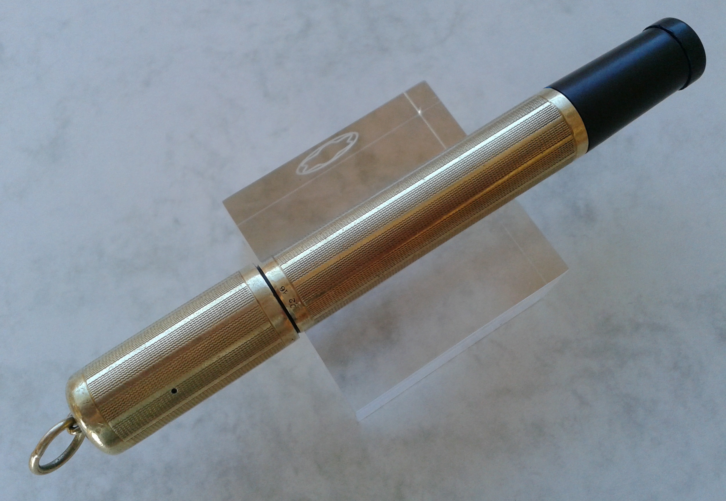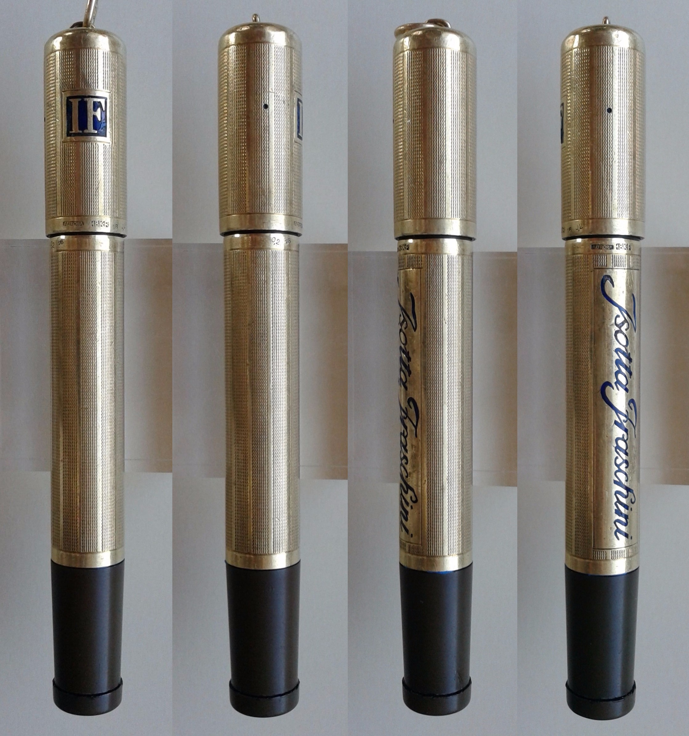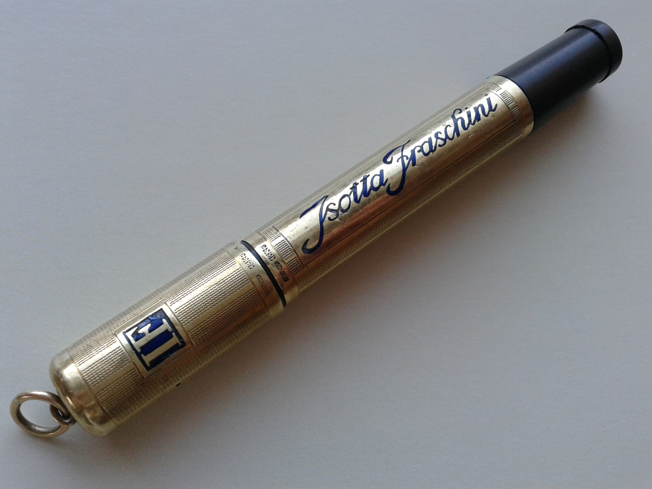 Non so se lo sfalsamento di logo e ragione sociale siano voluti, ma proprio non lo credo, anche perchè risultano così sfalsati anche i punzoni... Presumo vi sia stata una piccola rotazione del rivestimento di una delle due sezioni durante una maldestra manutenzione: nulla che non si possa rimettere in asse (ma non sarò certamente io a farlo, non l'ho nemmeno lucidata...). Per comodità di documentazione, in tutte le altre foto della recensione ho svitato per meno di un quarto di giro il cappuccio, in modo da avere una prospettiva più fedele possibile all'idea originale, con gli smalti e i punzoni allineati.
