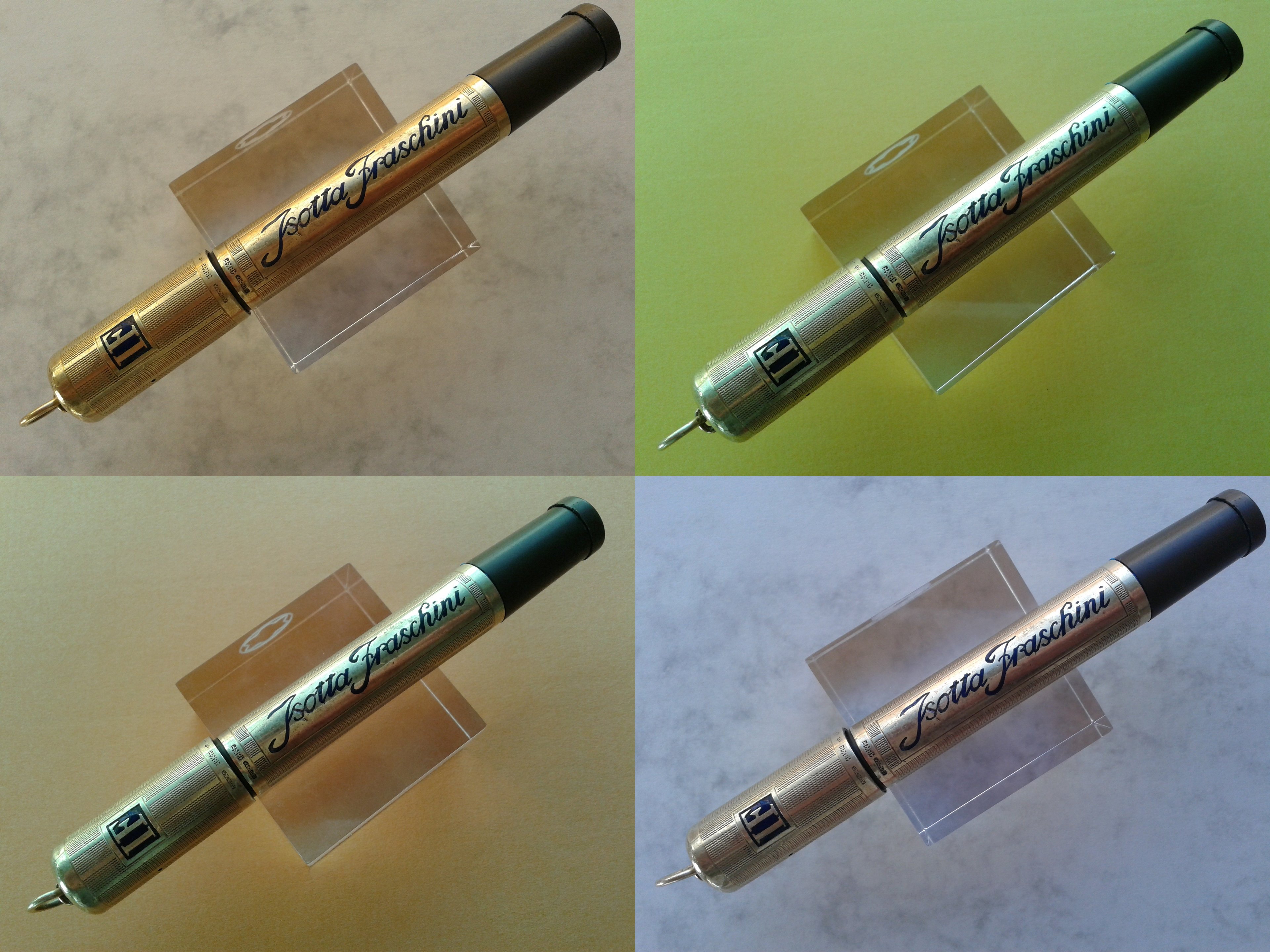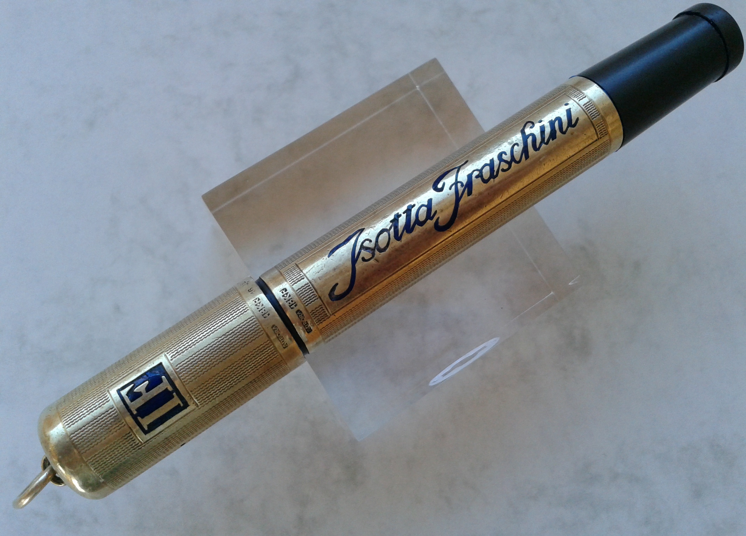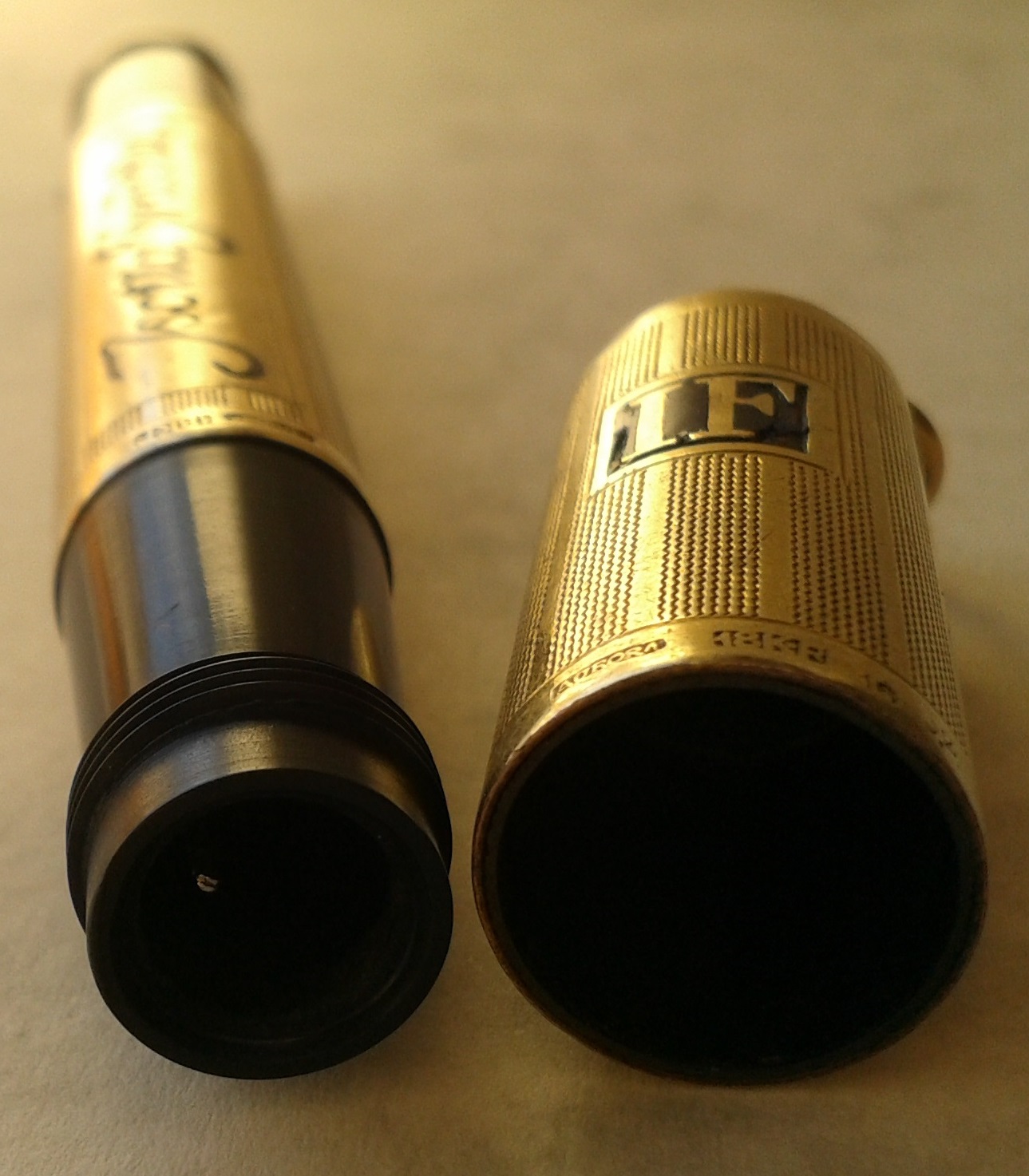 Non so se lo sfalsamento di logo e ragione sociale siano voluti, ma proprio non lo credo, anche perchè risultano così sfalsati anche i punzoni... Presumo vi sia stata una piccola rotazione del rivestimento di una delle due sezioni durante una maldestra manutenzione: nulla che non si possa rimettere in asse (ma non sarò certamente io a farlo, non l'ho nemmeno lucidata...). Per comodità di documentazione, in tutte le altre foto della recensione ho svitato per meno di un quarto di giro il cappuccio, in modo da avere una prospettiva più fedele possibile all'idea originale, con gli smalti e i punzoni allineati.