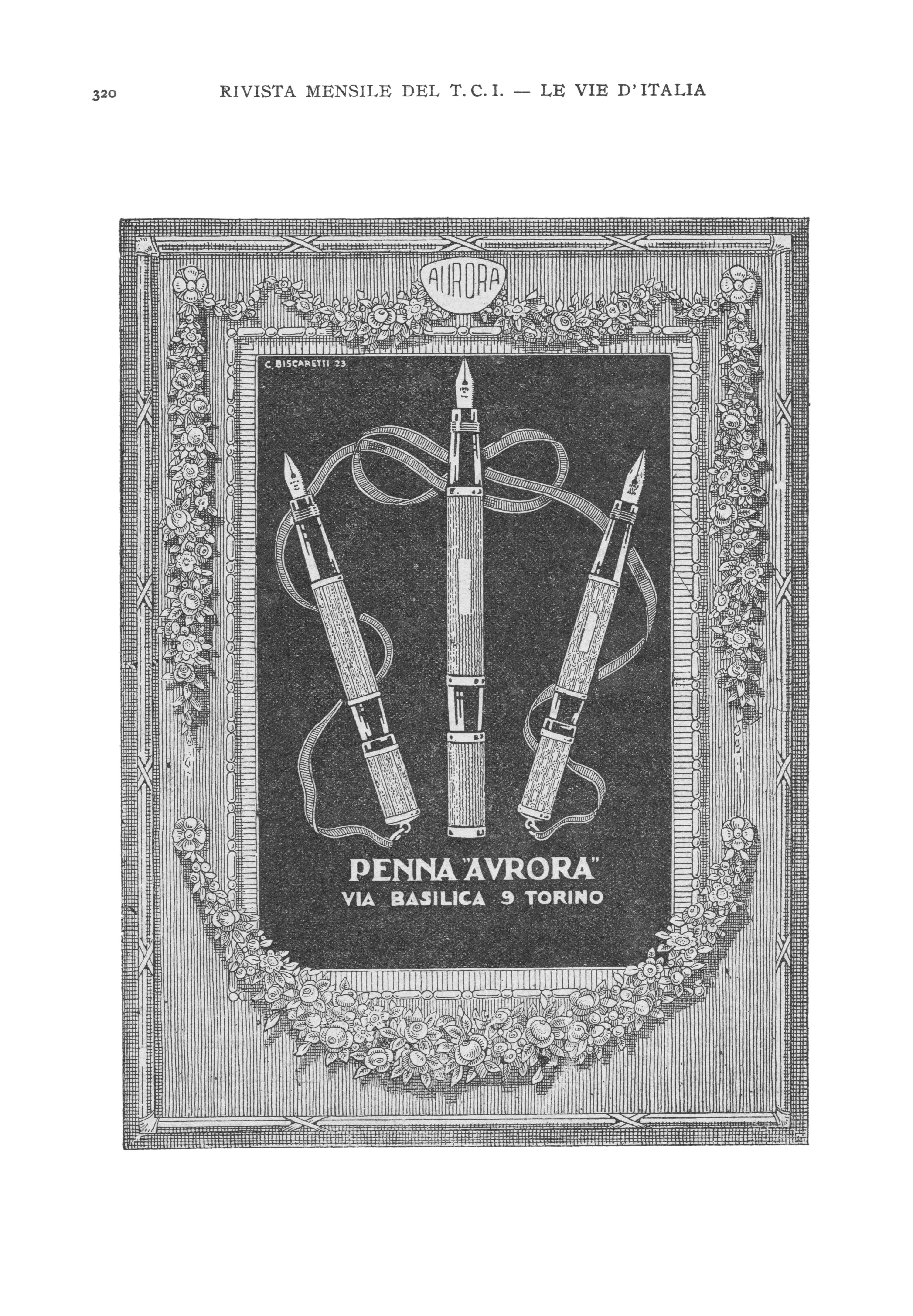 "AURORA TORINO" nel caratteristico cartiglio ovoidale dell'azienda,