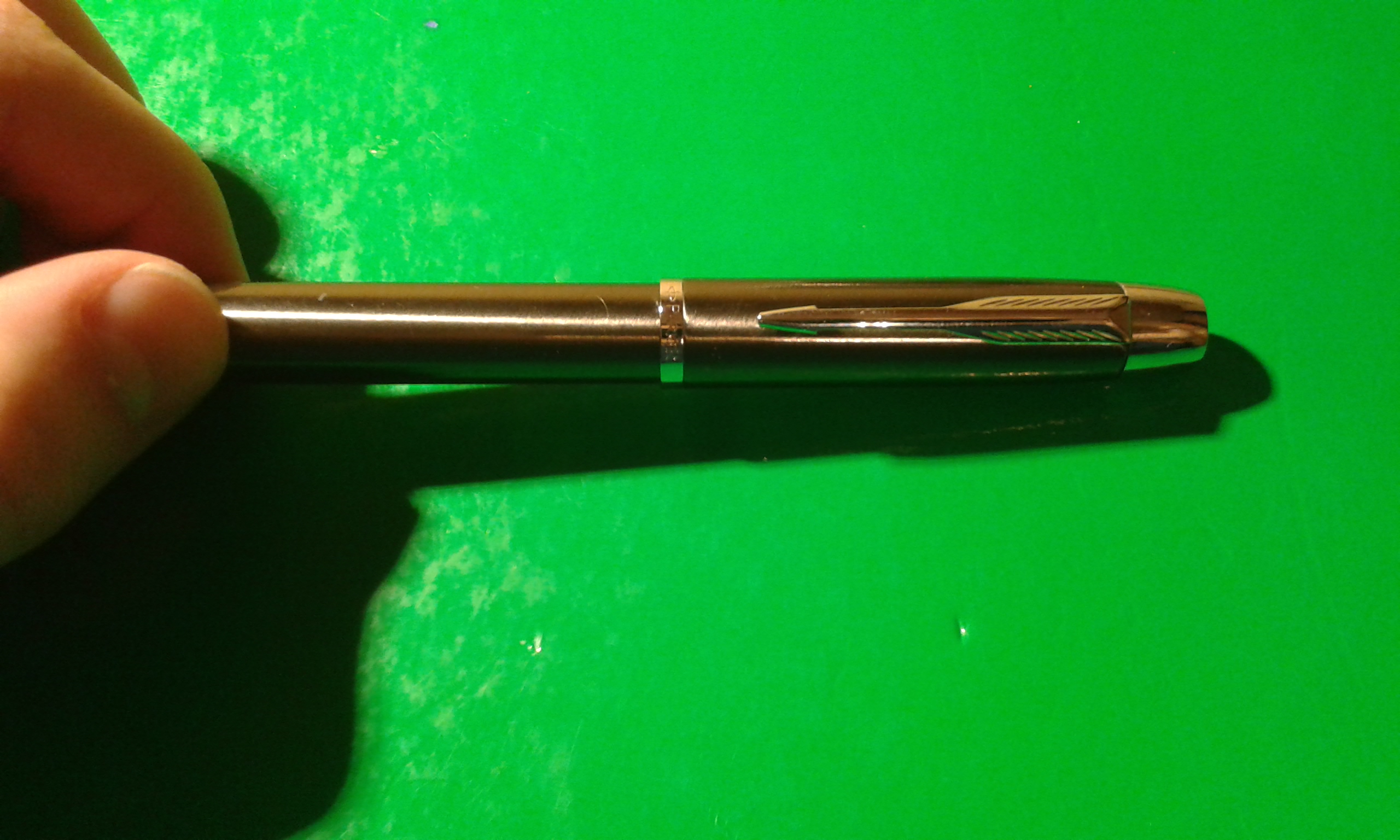 Da più di un anno scrivo con questa penna Parker di cui non conosco il nome (Scusate per la qualità della foto) e da parecchi mesi, quasi fin da subito in effetti, la carico con le cartucce di Parker quink Black. Ho notato che, oltre alle false partenze, l'inchiostro si secca sul pennino, costringendolo a frequenti lavaggi. Avete qualche consiglio da darmi? Visto che il blu Parker non mi piace, ci sono cartucce di altri produttori rintracciabili facilmente nelle cartolerie che vadano bene con l'attacco Parker?
