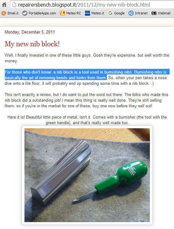 Non posso che essere d'accordo e mi complimento per il bel lavoro. tanto più che in un caso come il tuo si è trattato di cimentarsi su un pennino che avresti buttato, dunque ottimo per fare pratica, tanto peggio della spazzatura non poteva andargli.