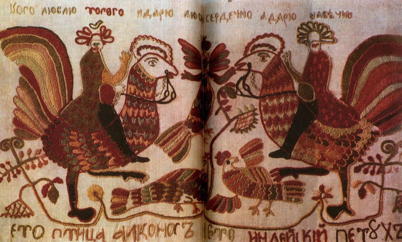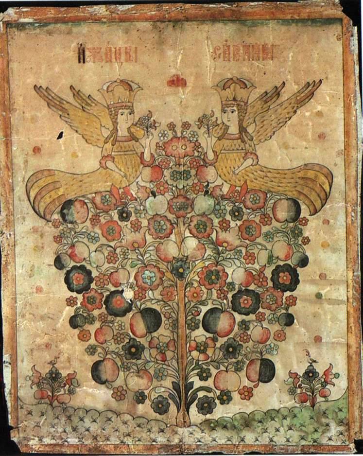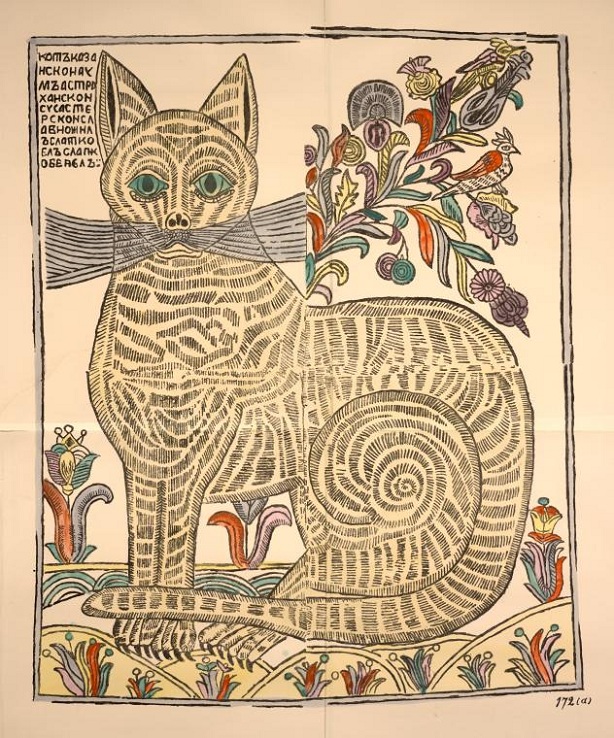 così voglio indicare queste immagini che da anni mi fanno compagnia, e quando non so da dove cominciare, il gatto del Kazan mi fa sempre compagnia, e la sirena Alkonost, e la strega baba Jagà, e il suggestivo cirillico.