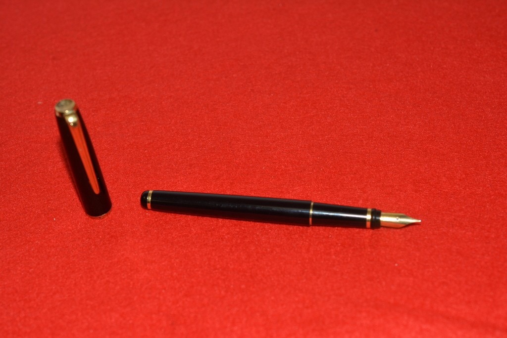 C'era stata qualche tempo fa qui una discussione proprio su questo strano logo; ora nella fretta non riesco a ritrovarla, ma si era concluso che non era Parker (d'altro canto non coincidono né la cartuccia né la clip), ma di un qualche produttore orientale. Poi potevano essere rimarchiate Marksman o altro, ma la provenienza era quella. E certamente non è Pelikan, come indicava il venditore.
