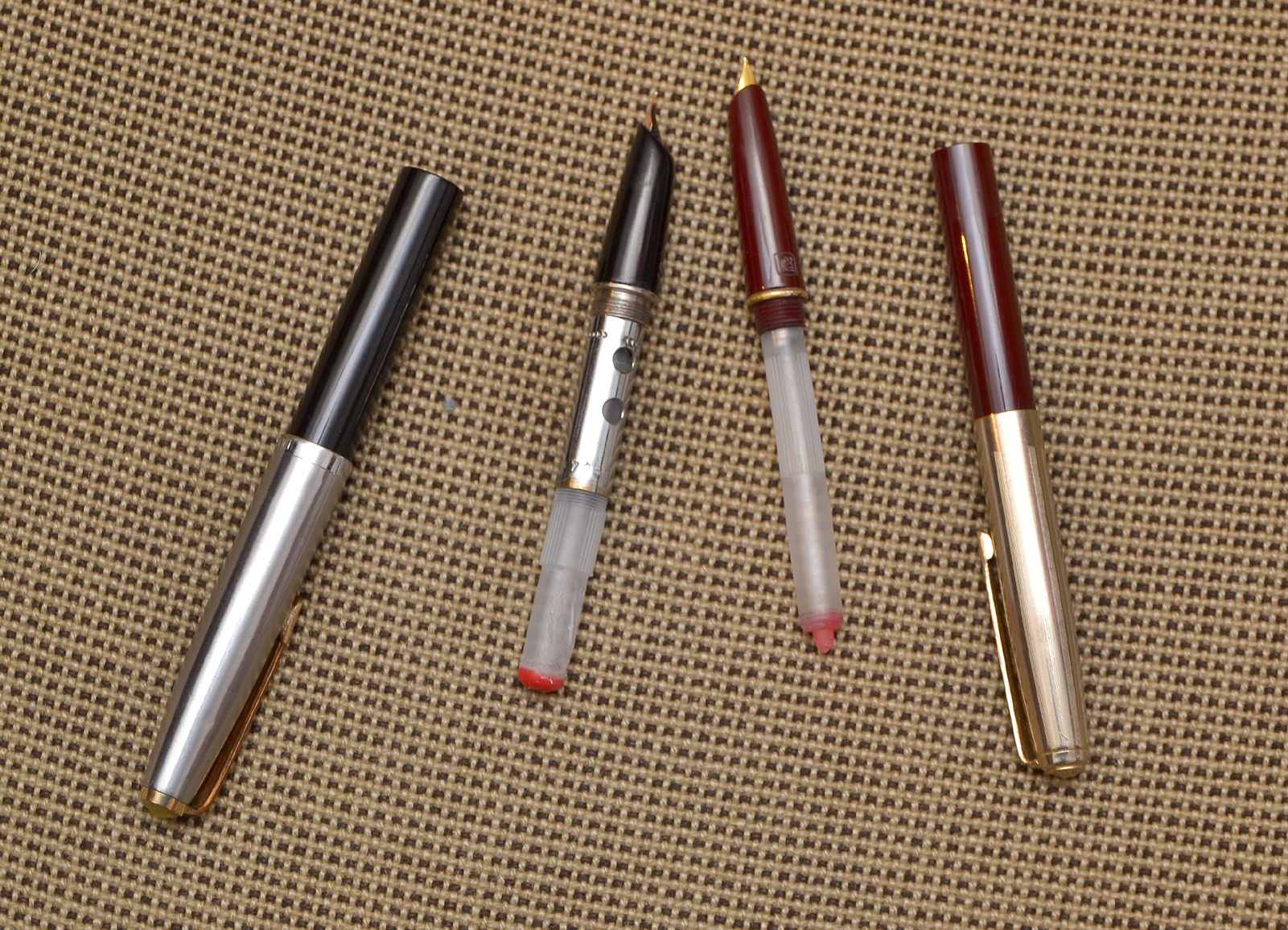 Aggiungo a titolo informativo, avendo avuto il privilegio di poter ammirare queste due penne dal vivo, che non è da escludere che le cartucce potessero essere utilizzate anche a mo di converter visto che la parte posteriore sembra abbastanza morbida da poter essere utilizzata come pompetta per tirare su l'inchiostro.