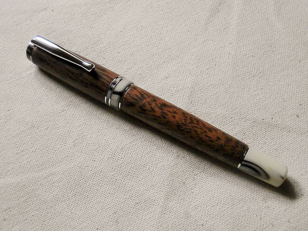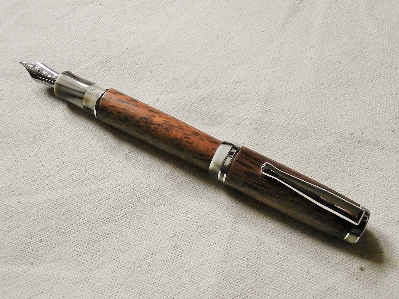L'iroko è un legno pregiato dell'Africa Equatoriale, usato per la costruzione di imbarcazioni; questa è la versione chiara o natural con pennino medio in acciaio, nella versione "lusso" il pennino è il celeberrimo fusion.