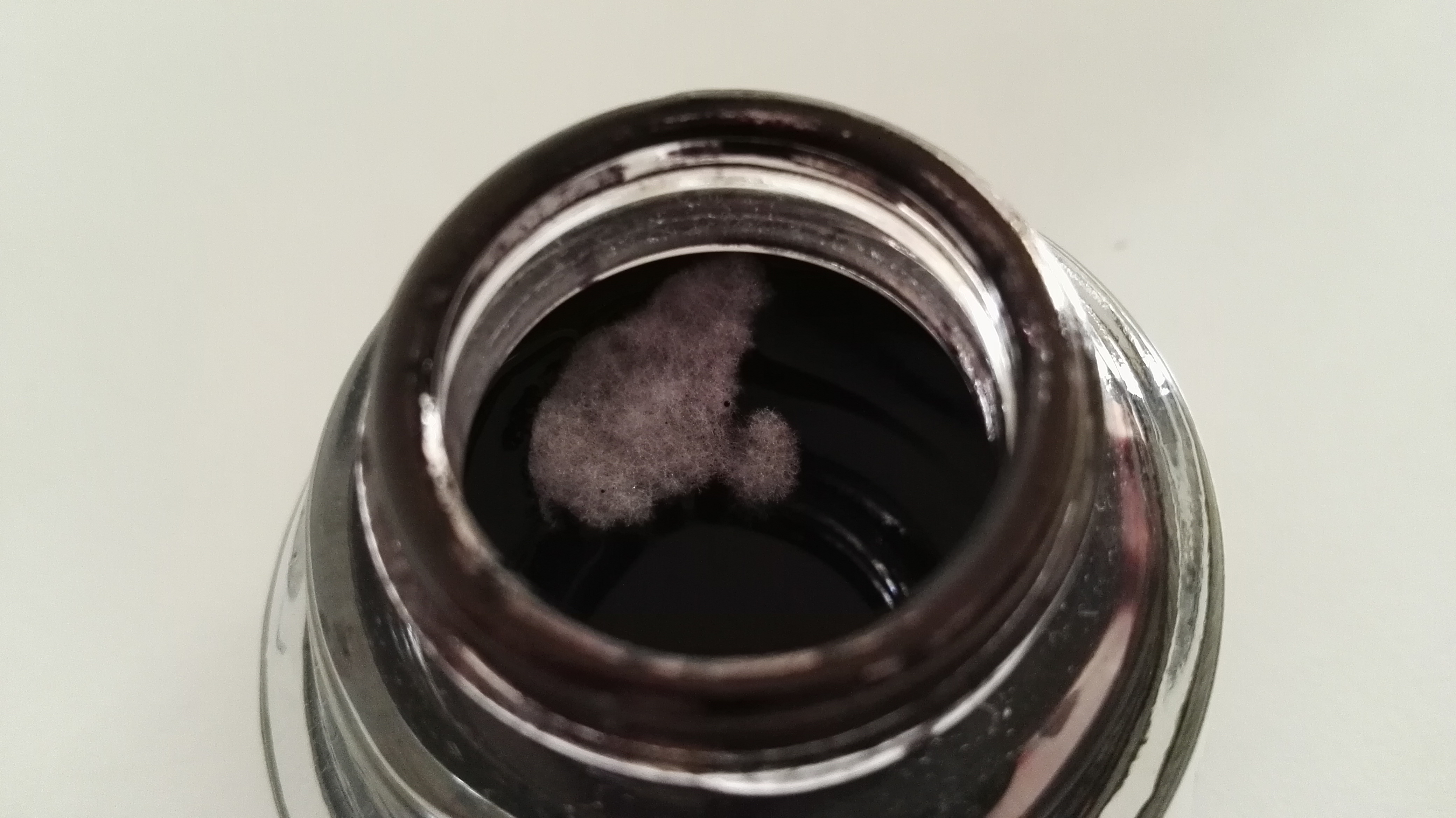 A me in una boccetta di Pelikan 4001 nero si era formata sul fondo una poltiglia filamentosa, che ovviamente mi ha intasato una penna (prima che me ne accorgessi). Ho dovuto buttare via tutto. Niente muffe, però.