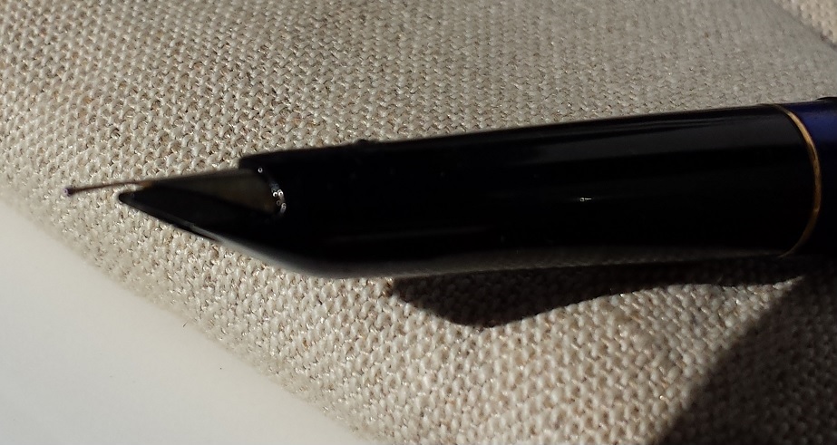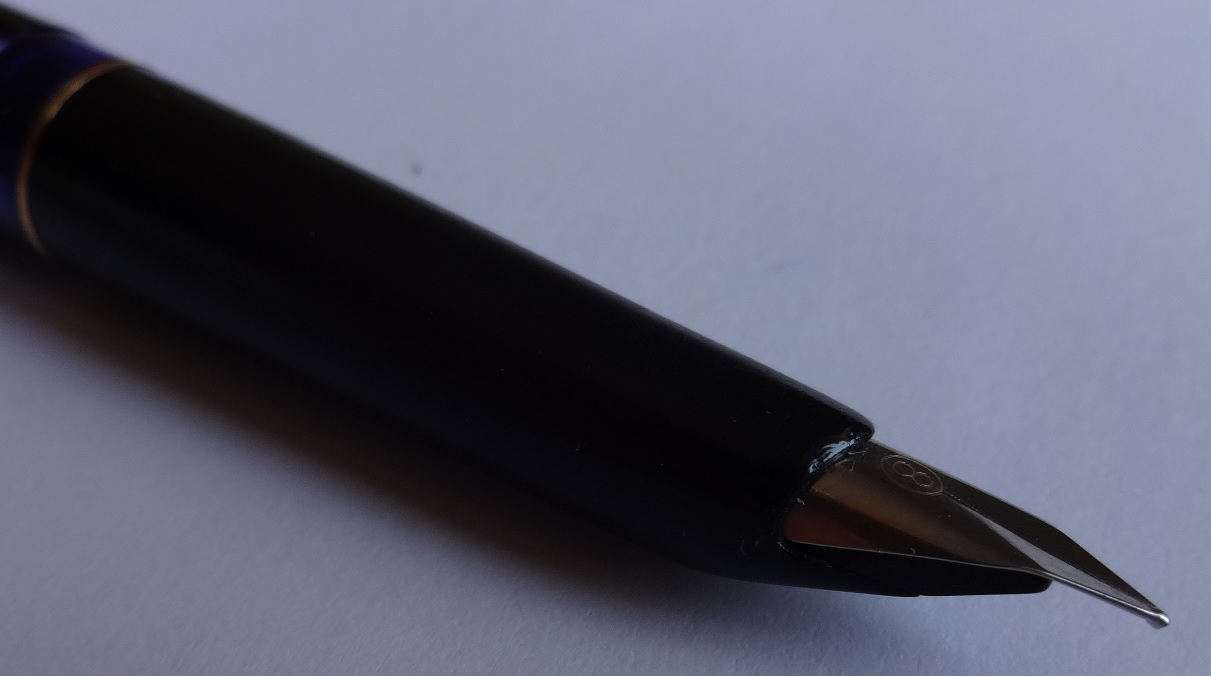 Ho eliminato le perdite dovute alla crepa non badando agli aspetti estetici (quando riuscirò a farla scrivere la farò tornare esteticamente accettabile) e ho cercato di risitemare il pennino. Poi ho ripreso i miei tentativi.