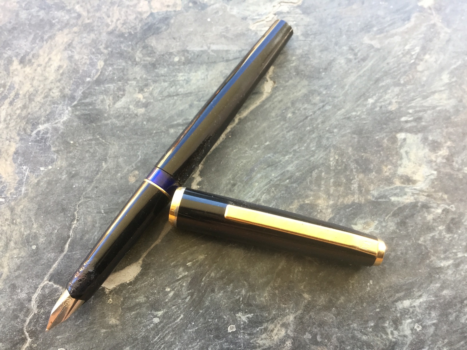 Ho passato sopra la colla uno strato abbastanza spesso di smalto nero, poi ho cartavetrato con carta sempre più fine, per poi lucidare. Il risultato non é disastroso, ma non perfetto. Inoltre non credo di avere usato i materiali adatti (colla Super Attack super forte, molto fluida, e poi smalto per unghie nero lucido). Inoltre, a parte l'aspetto estetico, forse l'operazione di limatura e lucidatura potrebbe avere ridotto o compromesso il sigillo della piccola crepa, che col tempo potrebbe riprendere a causare problemi di infiltrazione inchiostro.