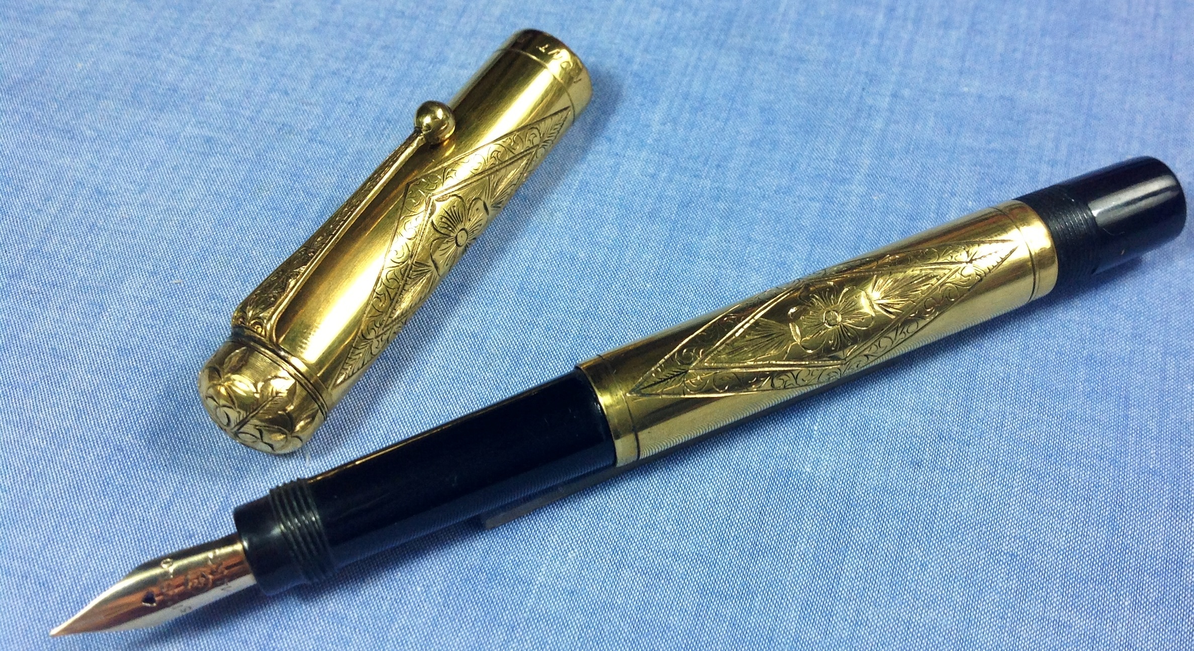 ricostruzione (come sempre) interessantissima e penna di assoluto livello, che mi lascia solo una domanda (alla quale comunque hai già risposto dichiarando la laminatura "rolled gold"): il bellissimo rivestimento a losanghe (che si troverà ancora su penne posteriori ma, come puntualmente osservavi, con uno stile floreale più belle époque) è quindi punzonato 18 K.R.?
