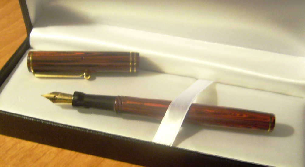 Guardando le foto del Wiki il pennino sembra diverso, ma è comunque un Eversharp io oro 14K, ma decisamente rigido.
