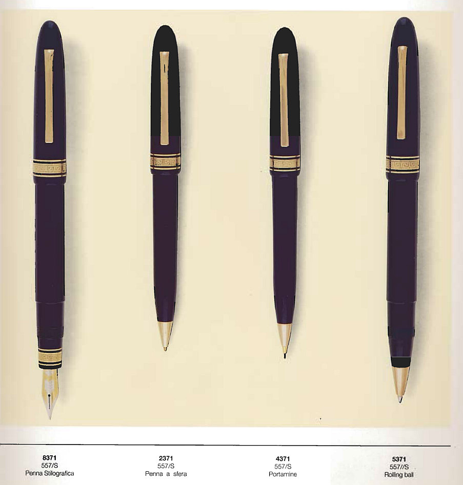 Queste, anche se nella scatola Montblanc, sono Omas modello Ogiva o, più probabilmente 557S direi (il modello più grande); si distinguono i due modelli perchè la 557S ha le due piccole bande al cappuccio sopra e sotto la vera larga, così come sulla sezione (l'impugnatura); la ogiva ha solo una vera al cappuccio e niente alla sezione