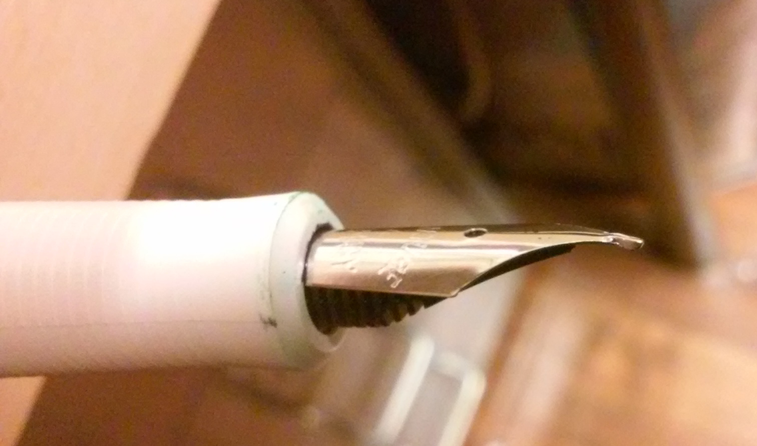 Il pennino porta la dicitura "Signature 4 Germany". Osservandolo bene sembra che la punta sia stata ottenuta piegando di 90° le estremità dei rebbi; risulta così formata come da due semicerchi paralleli affiancati, anziché la solita pallina riportata e poi tagliata dalla fenditura.