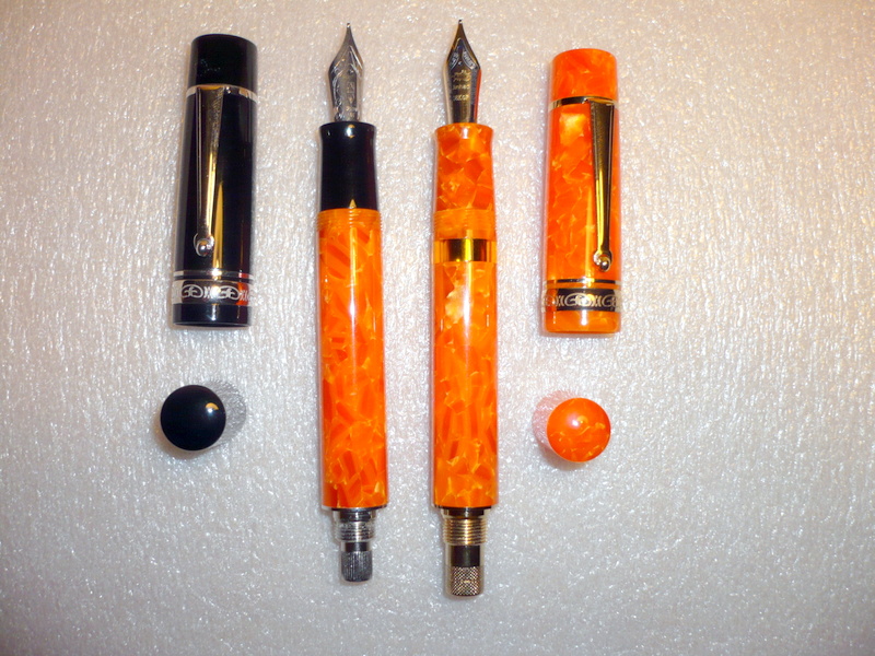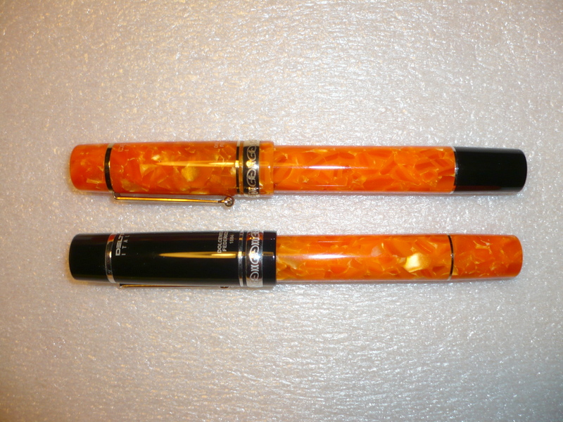 A prima vista le penne sono identiche, è infatti come vdrem molte parti sono itercambiabili, la sola differenza sostanziale che si nota è la finestrella che permette di visualizzare il livello dell'inchiostro. La cosa strana è che i cappucci sono intercambiabili ma leggermente diversi, quello della stantuffo è 2 mm più corto, e questo permette di visualizzare la finestra del livello inchiostro, infatti se vengono scambiati la finestra sparisce...