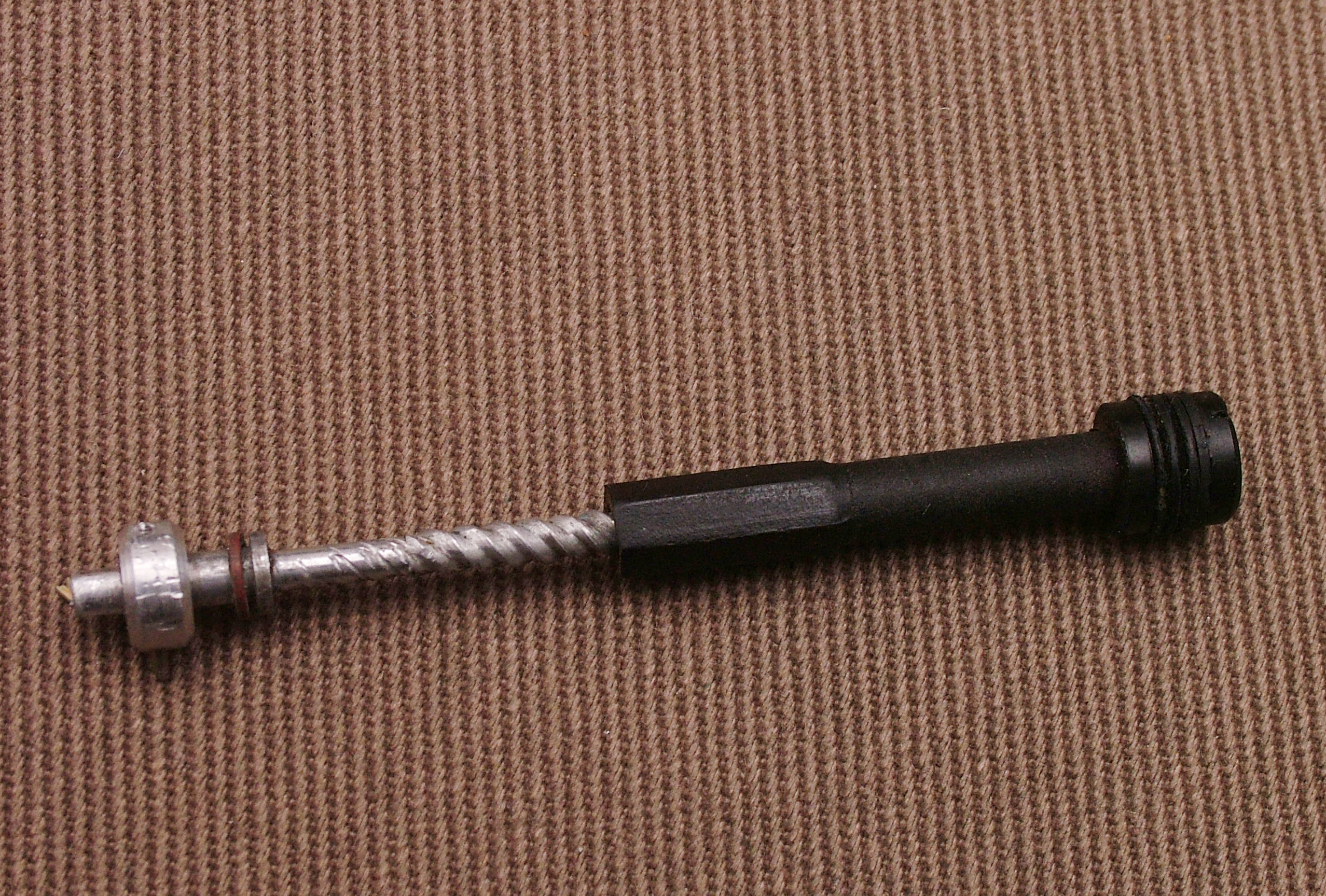 Dai un occhiata su Wiki, devi sostituire o ripristinare le guarnizioni di tenuta del pistoncino.Il forellino dovrebbe essere quello per l'aria sopra al pistoncino.
