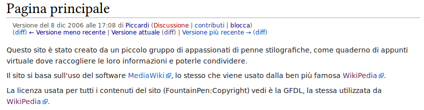 Per molto tempo il fountainpen.it non è stato altro che un sito con qualche scarna paginetta trascritta dagli appunti che tenevo in una cartellina. Il forum arrivò quasi dopo due anni. Ed anche oggi quella dichiarazione resta presente, tale e quale, nella pagina di ingresso, perché tutt'ora quello resta lo scopo del wiki.