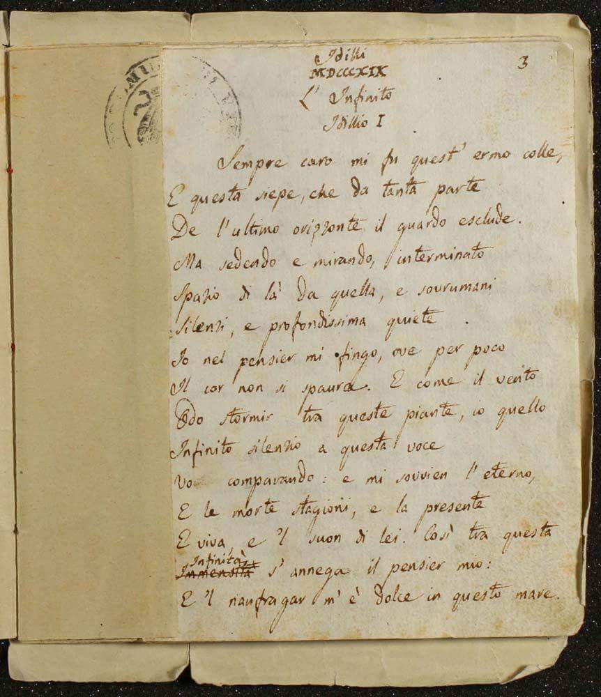 Giacomo Leopardi, l'infinito autografo, 1819