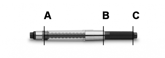 Il problema principale sembra sul diametro B, che non permette al converter di andare fino in fondo, dato che la penna ha il corpo che si assottiglia in coda. Il diametro A non è molto problematico ma il Pelikan entra proprio a filo.