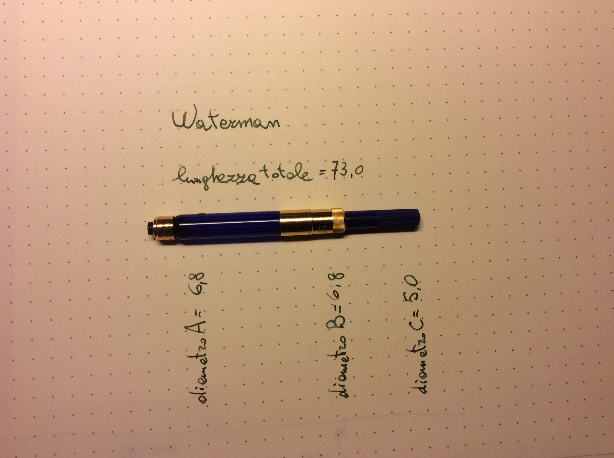 Nella mia Waterman Expert Deluxe CT nessuno dei converter universali come il Pelikan permettevano la chiusura, così sono andato con la penna nelle cartolerie ed ho provato tutti quelli che avevano, l'unico che passava era il Waterman quello in foto che probabilmente era in negozio da un po'.