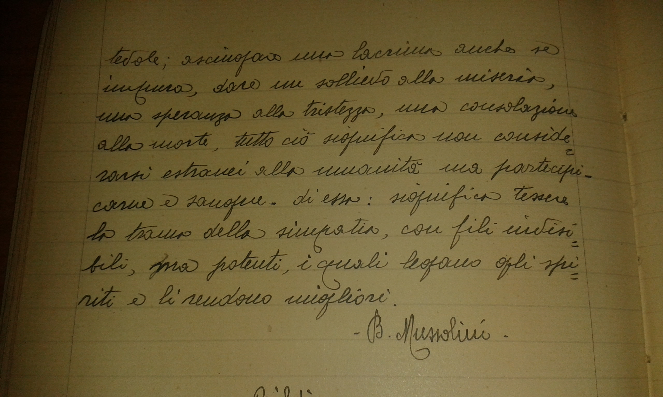 Se si tratta dello stesso quaderno, è singolare che ci sia uno scritto del 1957 insieme ad brano di Benito Mussolini.