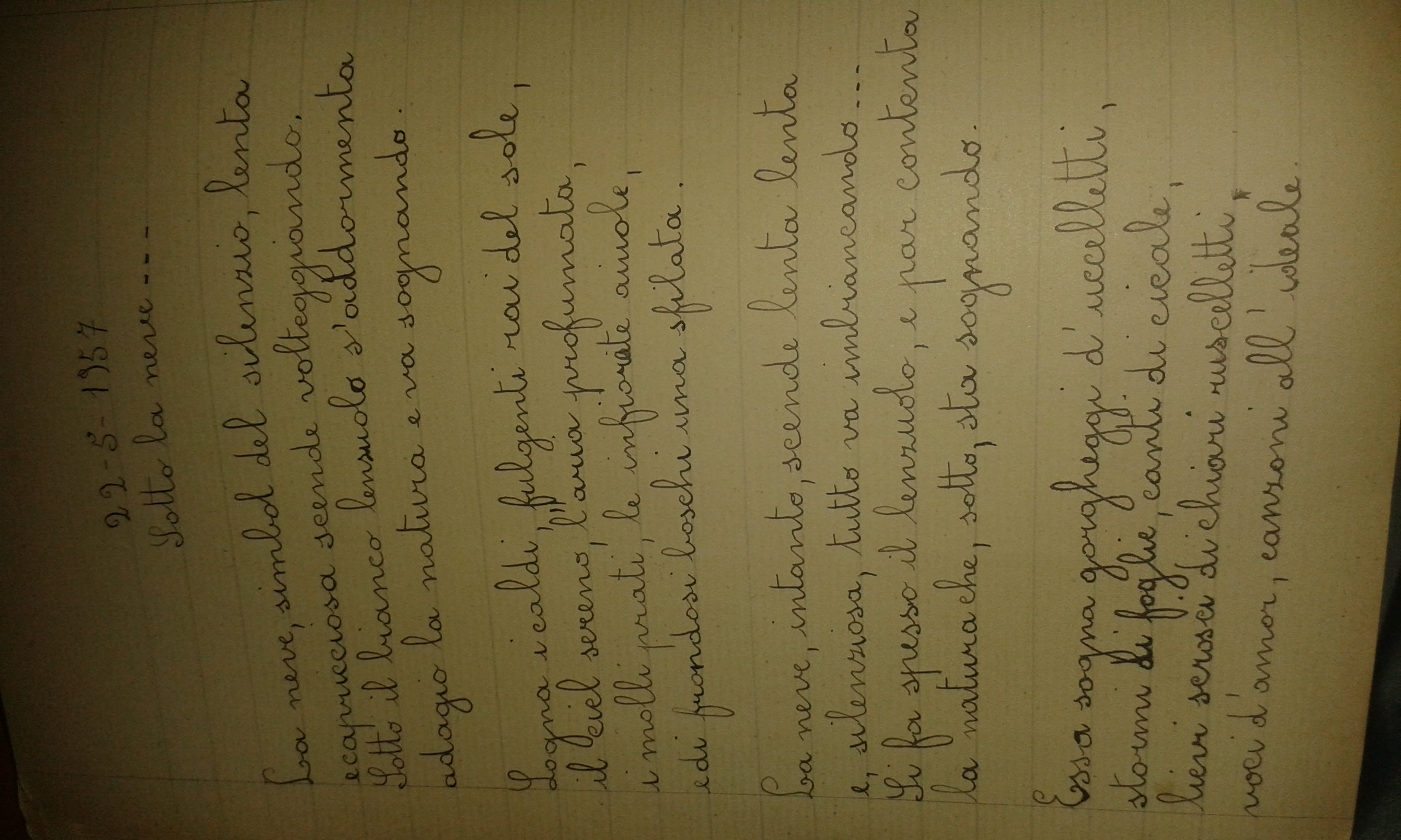 Se si tratta di lavori scolastici è anche singolare il testo dal tema prettamente invernale datato maggio inoltrato, ricordo che in genere i temi trattati seguivano un po’ l’andamento delle stagioni ed a maggio sarebbe stato più consono un testo che celebrasse la primavera ed il risveglio della natura dal torpore invernale.