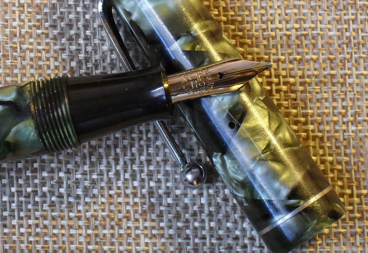 Il pennino, prodotto da Summit, non è flessibile, ma neppure rigido: come spesso capita con i pennini inglesi coevi, è dotato di una buona molleggiatura. La scrittura scivola via molto piacevolmente, in modo preciso e con un ottimo flusso, mai eccessivo ma neppure magro. La penna si impugna molto bene ed è ottimamente bilanciata, anche con il cappuccio calzato.