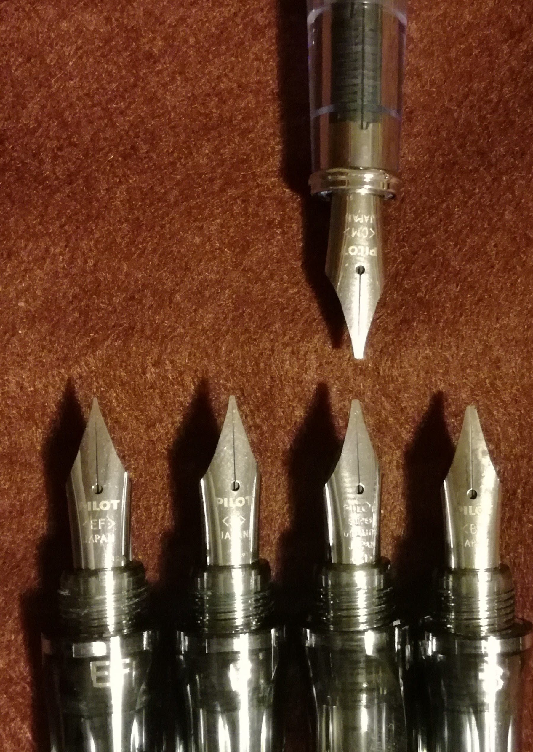 Per quanto riguarda l'utilizzo trovo l'EF un eccessivamente sottile, l'F buono per scritti molto piccini, il pennino M / CM è il mio preferito.