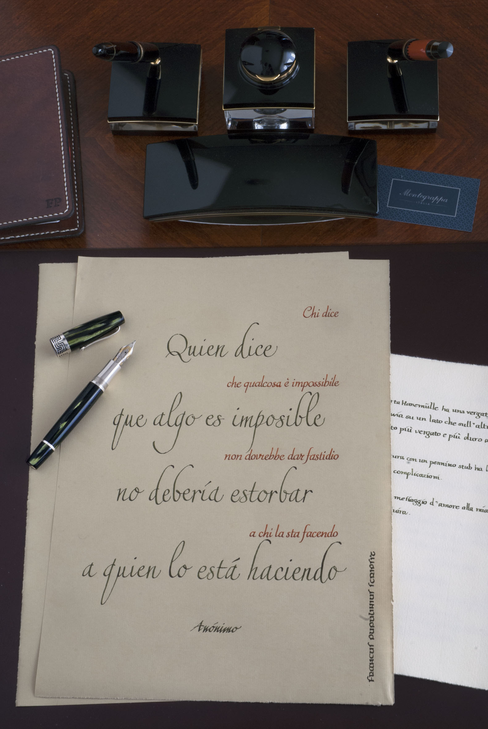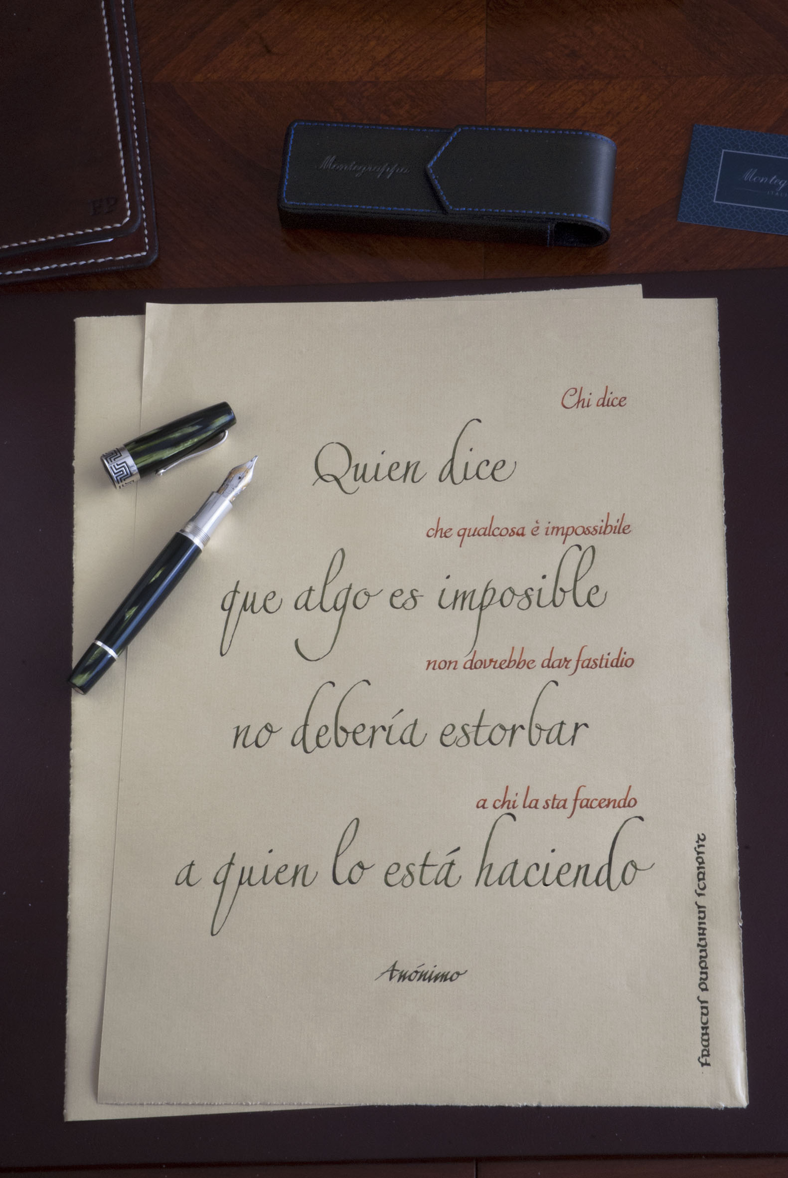 La scritta in spagnolo é fatta con il pennino stub della Montegrappa Extra 1930 e inchiostro Diamine Classic Green.