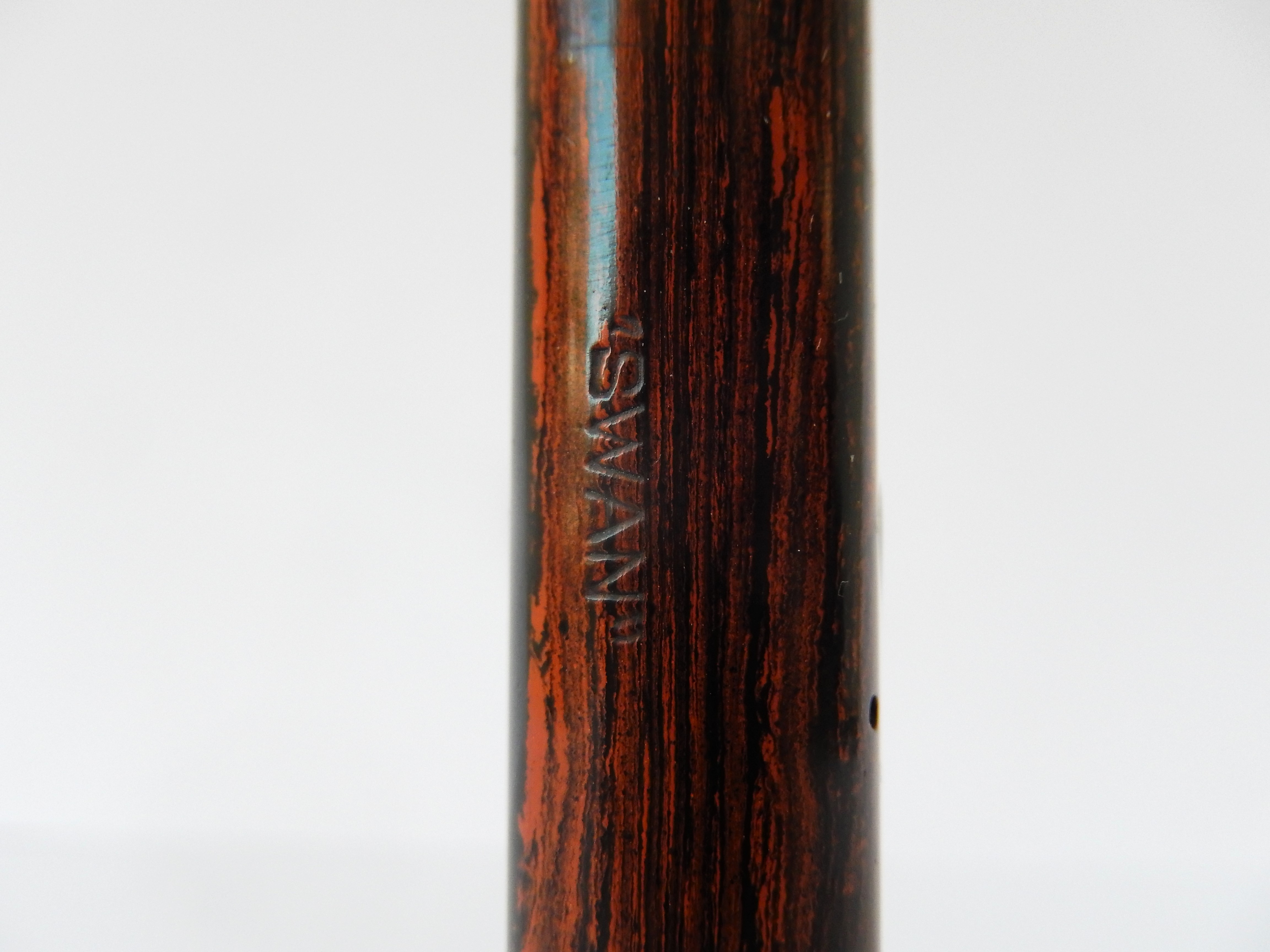 Sul corpo della penna troviamo invece inciso su tre livelli "Swan Self filling Pen/ Mabie todd & Co/Madein England" e perpendicolarmente a questa scritta inciso il nome del modello " Eternal".