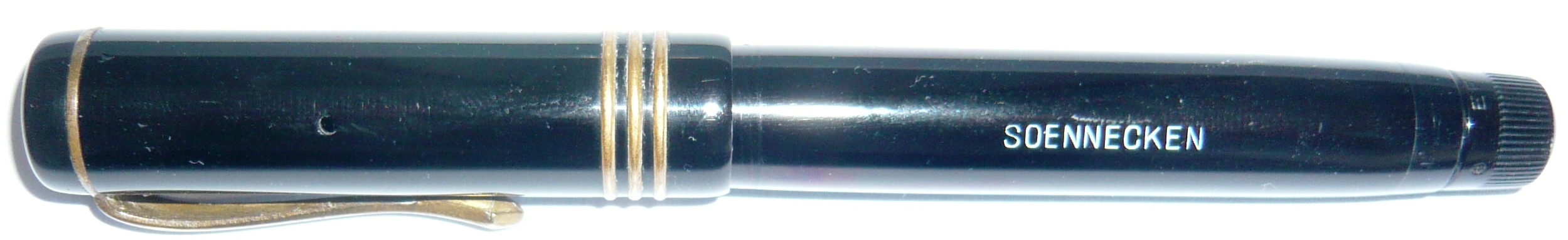 Per ricevere aiuto sull'identificazione di una penna è sempre meglio mostrare la clip in primo piano, e documentare la testina (è come quella segnalata giustamente da Max o ha una "S" circondata da raggi?) e il fondello (sotto il nottolino a volte è impresso un numero). Le Soennecken hanno (sempre?) il numero inciso accanto oppure sotto al Marchio: sulla tua potrebbe essersi cancellato? Verifica in controluce.