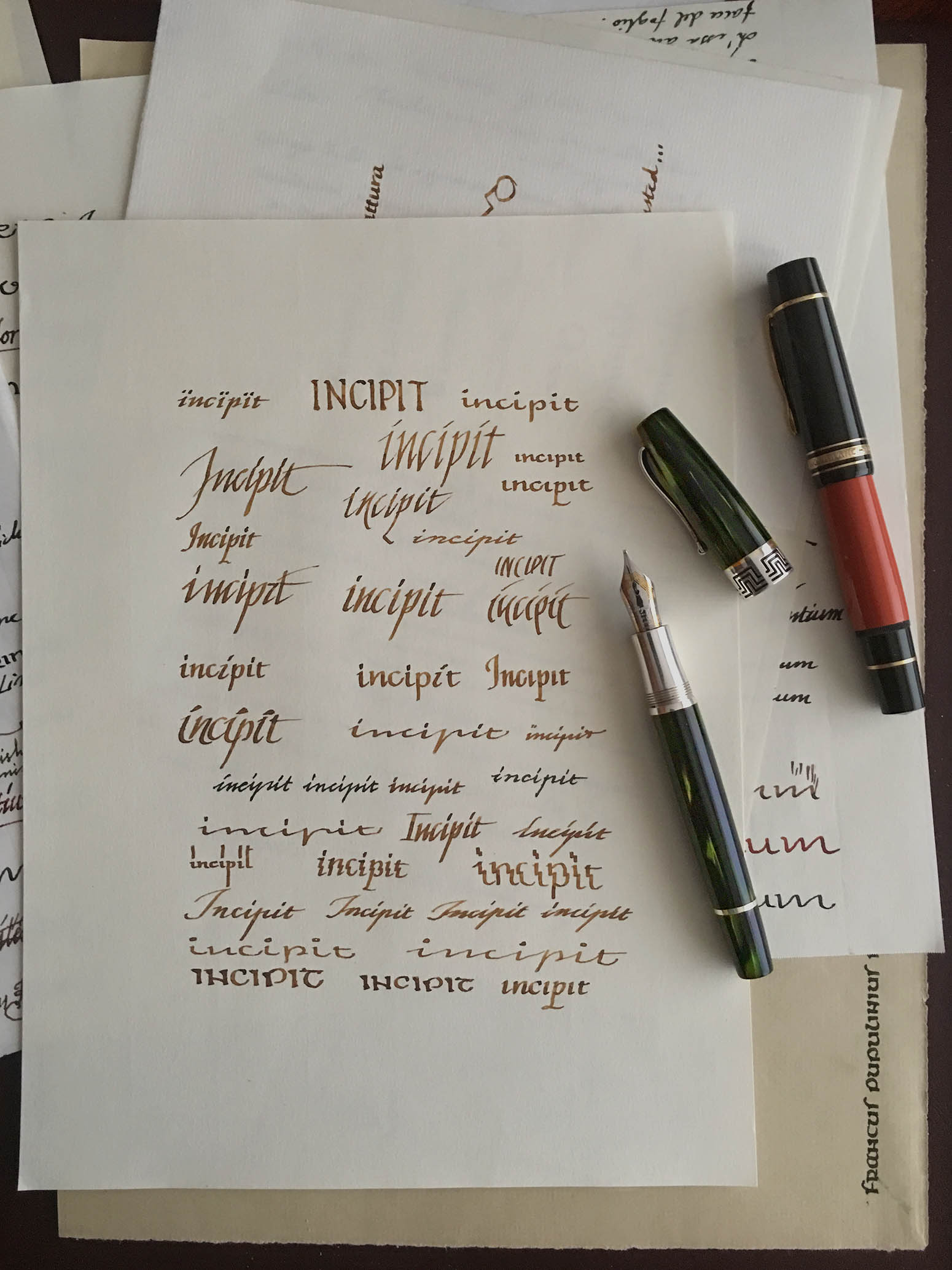In questo caso, null'altro che una pagina di "incipit" in grande libertà, usando il pennino stub della mia Montegrappa 1930 Extra Acque del Sile, con appena un pizzico di Montblanc Hemingway in extra-fine.