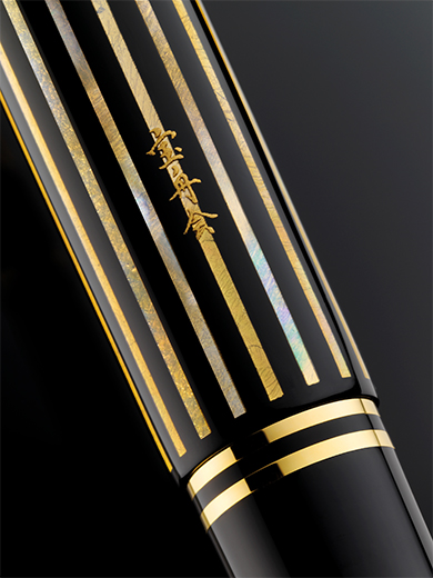 Una lamina d’oro a 14 carati è apposta poi accuratamente sulla parte posteriore di queste strisce che vengono in seguito fissate al cappuccio e al fusto attraverso la laccatura. Infine, l’artista firma e numera ogni penna stilografica con la tecnica Maki-e, in passato riservata esclusivamente ai reali giapponesi a dimostrazione del loro potere.