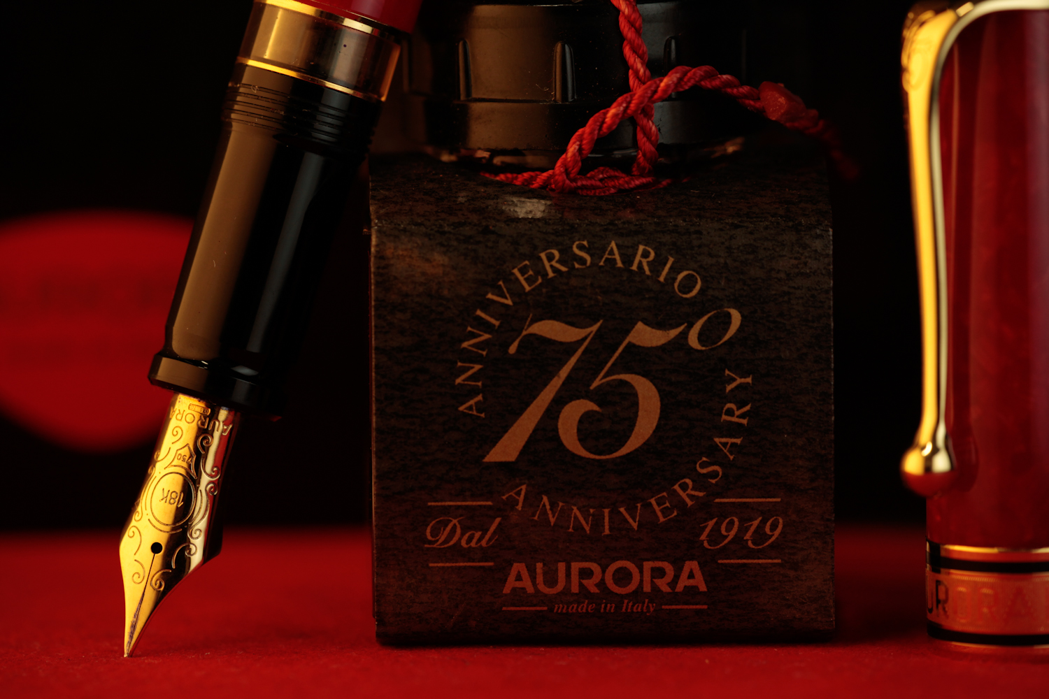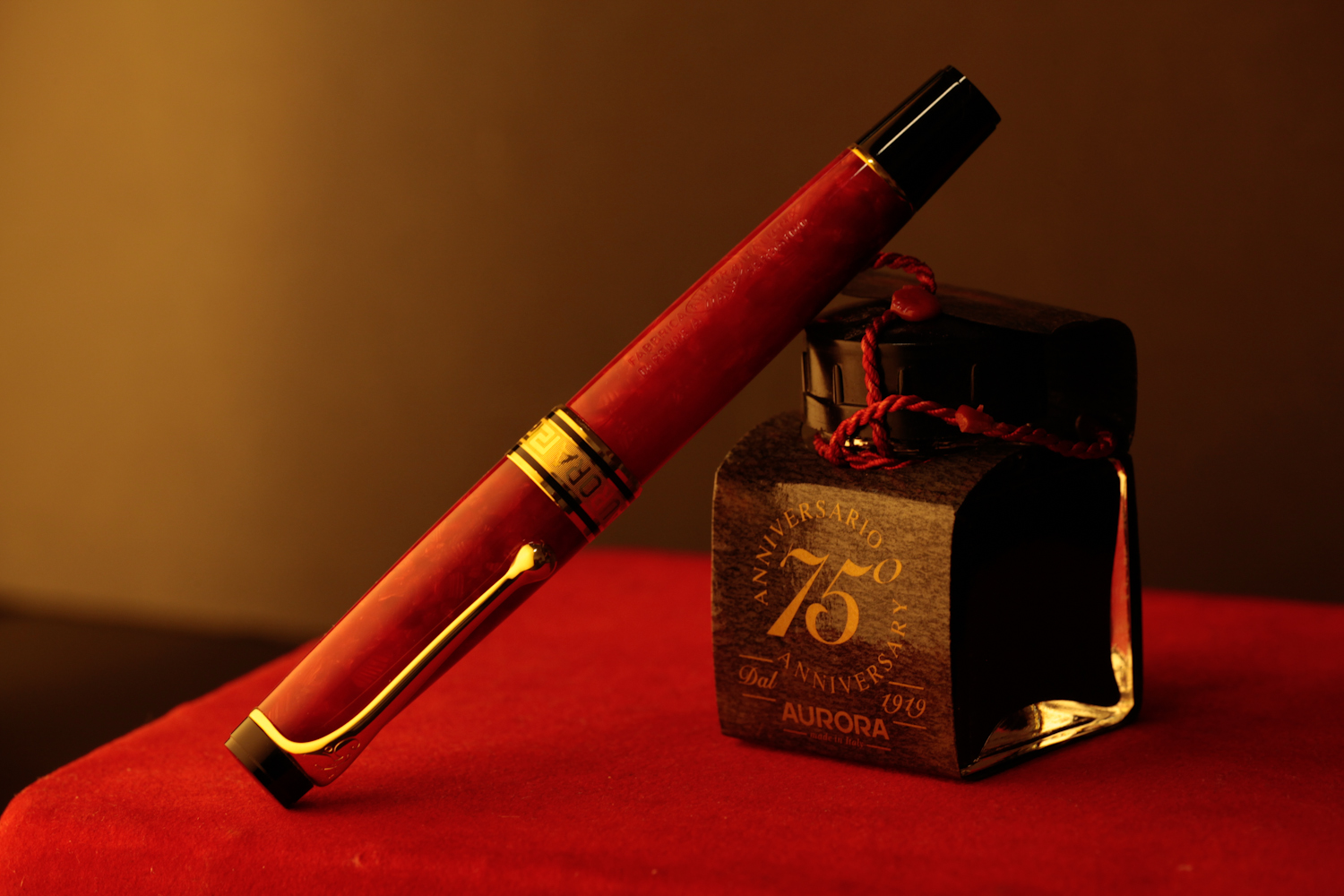 Ciao a tutti, vi presento un'altra penna della mia piccola collezione: una Aurora Red in auroloide creata per il 75° anniversario della casa in serie numerata e con un pennino in oro da 18KT. Il pennino ha misura fine, è ferma li da qualche tempo, a breve la inchiostrerò e scriverò una breve recensione, per il momento le immagini.
