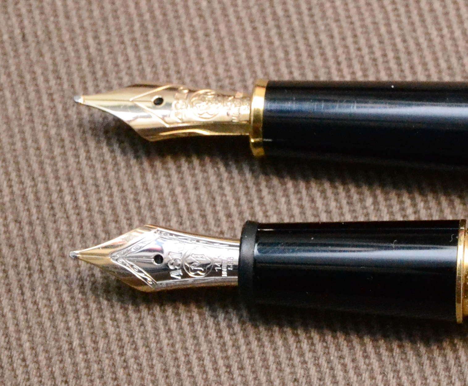 - Forma del pennino appare più tozza che nell'originale (potrebbe essere una prospettiva deformante della foto)