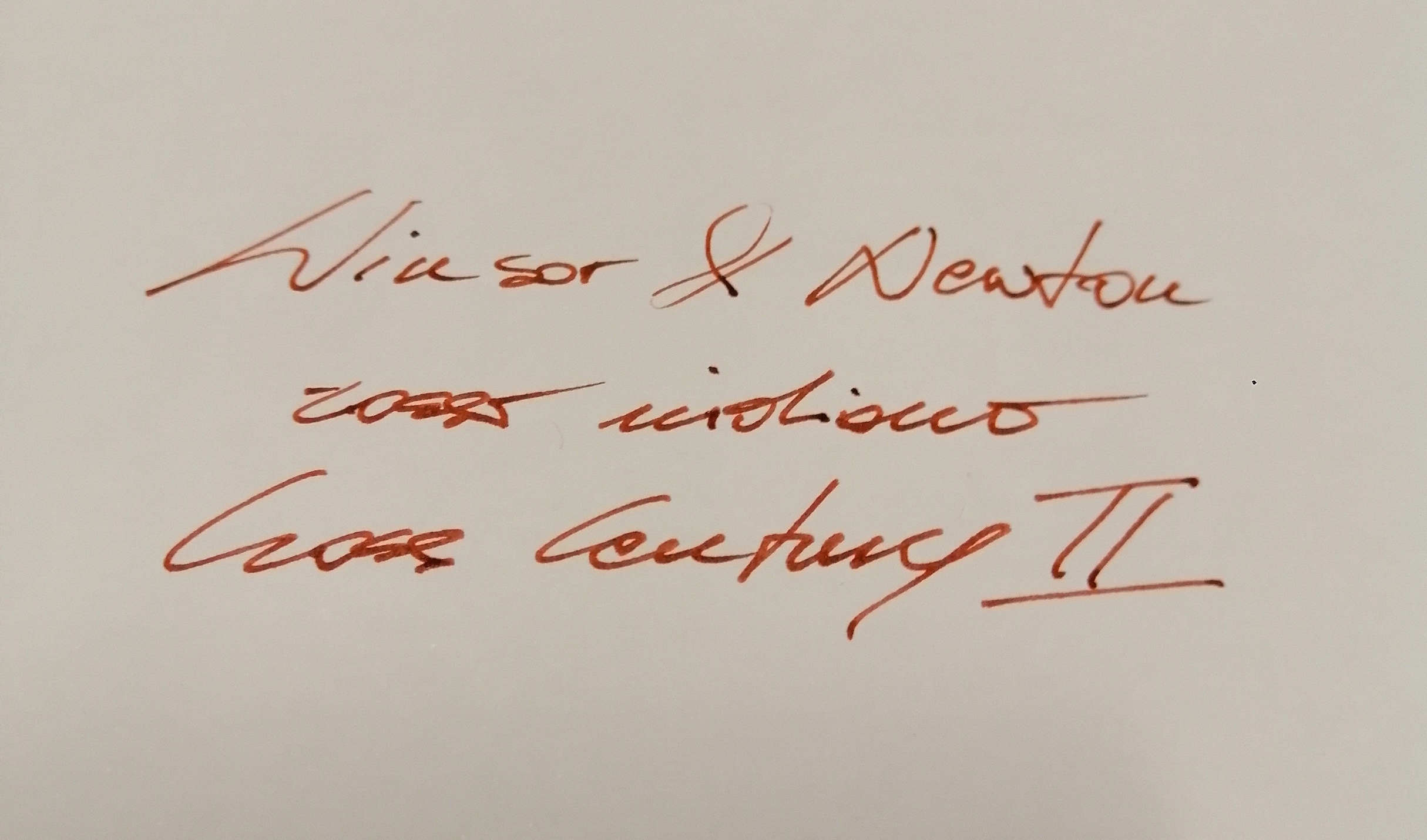 Prova di scrittura, inchiostro Winsor & Newton, rosso indiano, Cross Century II