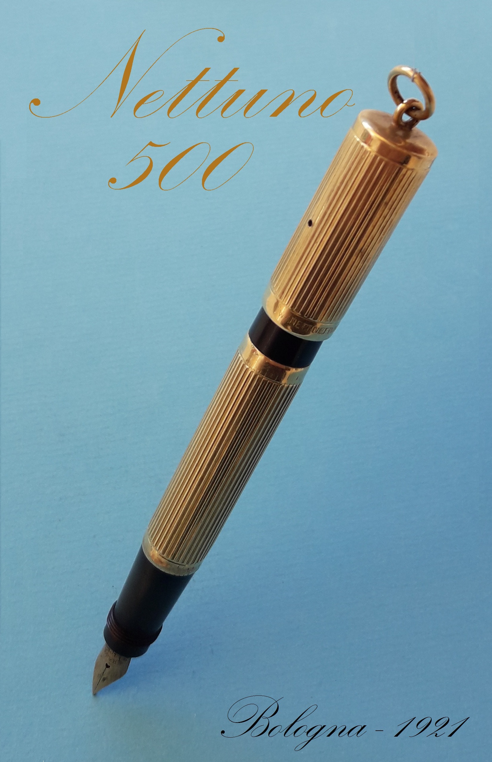 Nel 1916 il Marchio venne depositato presso la Camera di Commercio di Bologna per un’attività di ricambi e riparazioni legata verosimilmente al negozio di cartoleria della Famiglia Vecchietti, mentre solo dal 1921 sarebbe iniziata la commercializzazione di penne prodotte in proprio (probabilmente assemblando materiali forniti da terzi, come sicuramente i pennini fatti venire dalla Germania) e avvenuto il deposito del trademark Penna Nettuno Sicurezza”.