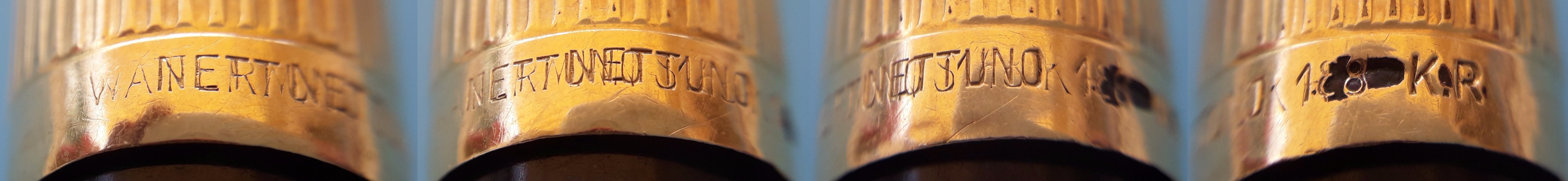 Dopo lo svarione iniziale, l’incisore era partito benino, cercando di abradere le prime due lettere del Marchio sbagliato (Waterman) e di fare coincidere almeno la prima "E" di entrambe le Marche: ma il risultato non era soddisfacente (per il suo capo?), ed egli fu costretto a incidere nuovamente Nettuno, e per soprammercato ad abbondare inspiegabilmente con gli "8" in coda al punzone, oramai in preda al marasma più completo…