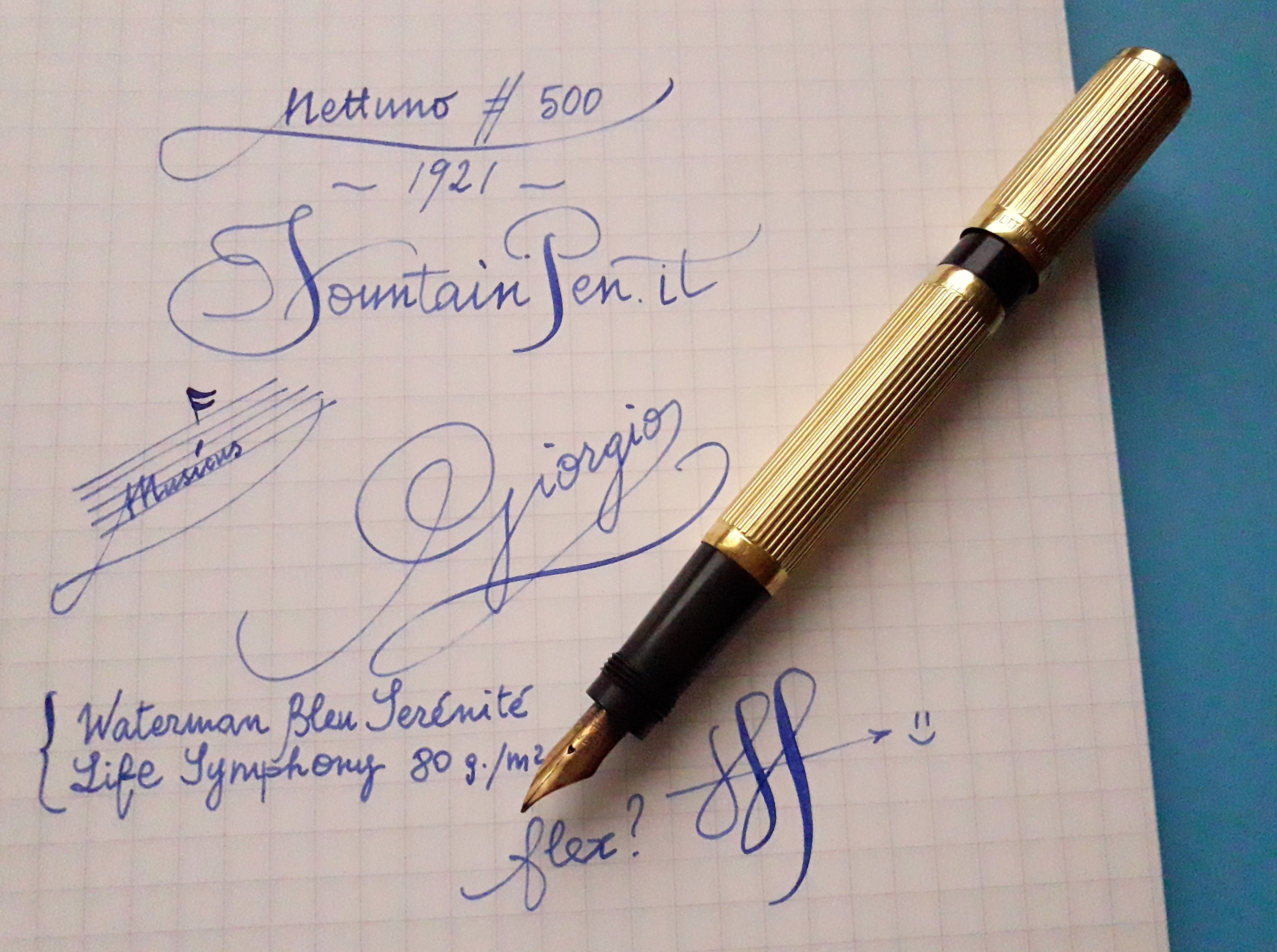 Come sembrerebbe provare il recente intervento di un nuovo iscritto (che chiedeva informazioni su una splendida Waterman 42 con identico rivestimento https://forum.fountainpen.it/viewtopic.php?f=8&t=14407 ), il modello “scanalato” era uno dei decori sicuramente adottati dalla Waterman, una corazzata industriale che dopo la I Guerra Mondiale si era posizionata al vertice del mercato delle penne di lusso (nel mondo intero prima che in Italia). Il rivestimento proposto a Waterman dal laboratorio (milanese) era davvero elegante (oltre che unisex), e alla (giovane e piccola) Nettuno non esitarono a richiederlo anche per le loro stilografiche.