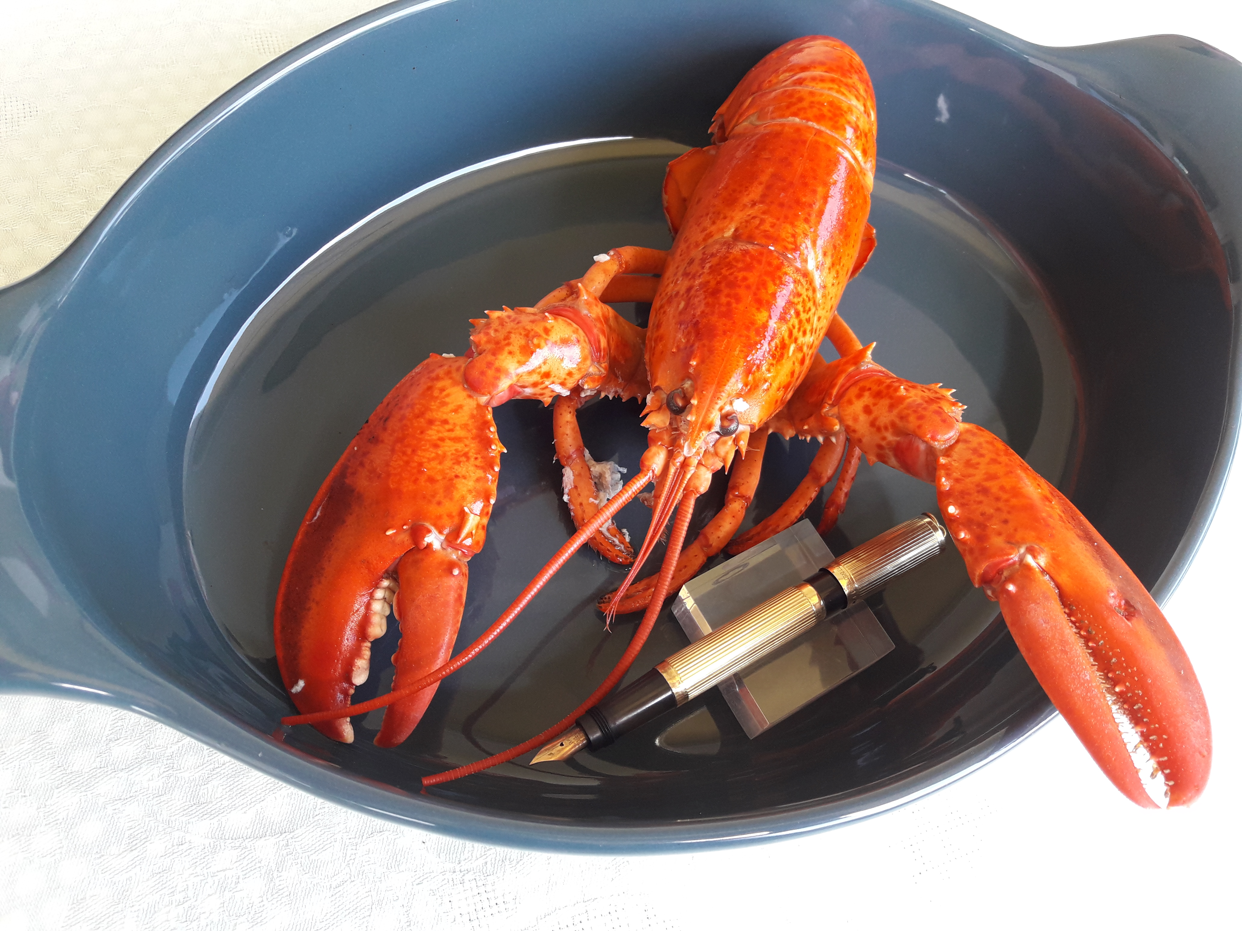 Dispiaciuto di non aver suscitato lo stesso riscontro del polpo, l’astice mi ha pregato di pubblicare una sua posa più rilassata, scattata in una pausa nella lavorazione del servizio…