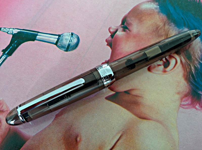 La plastica non sembra di qualita' eccelsa, ma tutto sommato e' ben lucida e non trovo sbavature o scalini nei punti di chiusira dello stampo. L'estremita' ha una specie di tappino, sembra montato a pressione. Aprendola si trova un converter di qualita' modesta, ma comunque funzionante e si nota la presenza di un oring, che fa pensare alla possibilita' di convertirla in eye dropper. Lascio agli sperimentatori questa opportunita' di divertimento.