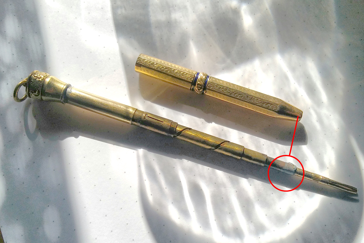 Nel frattempo ho recuperato un'altra matita telescopica. In questo caso il danno è ben più grave, ma questa circostanza mi ha permesso di capire meglio come funzionano queste "Magic Pencil"