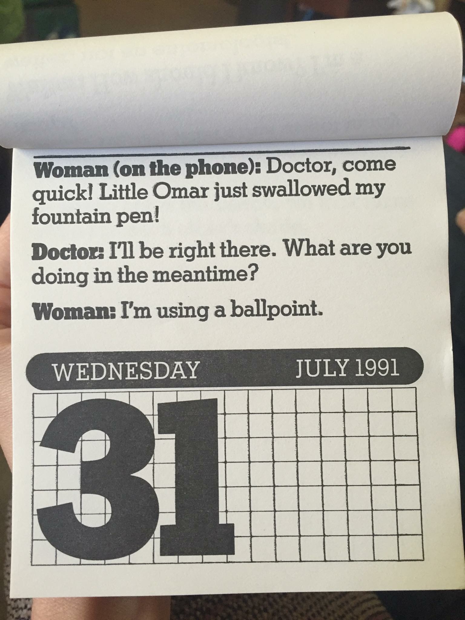 Sciura: "Dottore! Dottore! Mio figlio Omarino ha appena ingoiato la mia stilografica: venga tosto!"