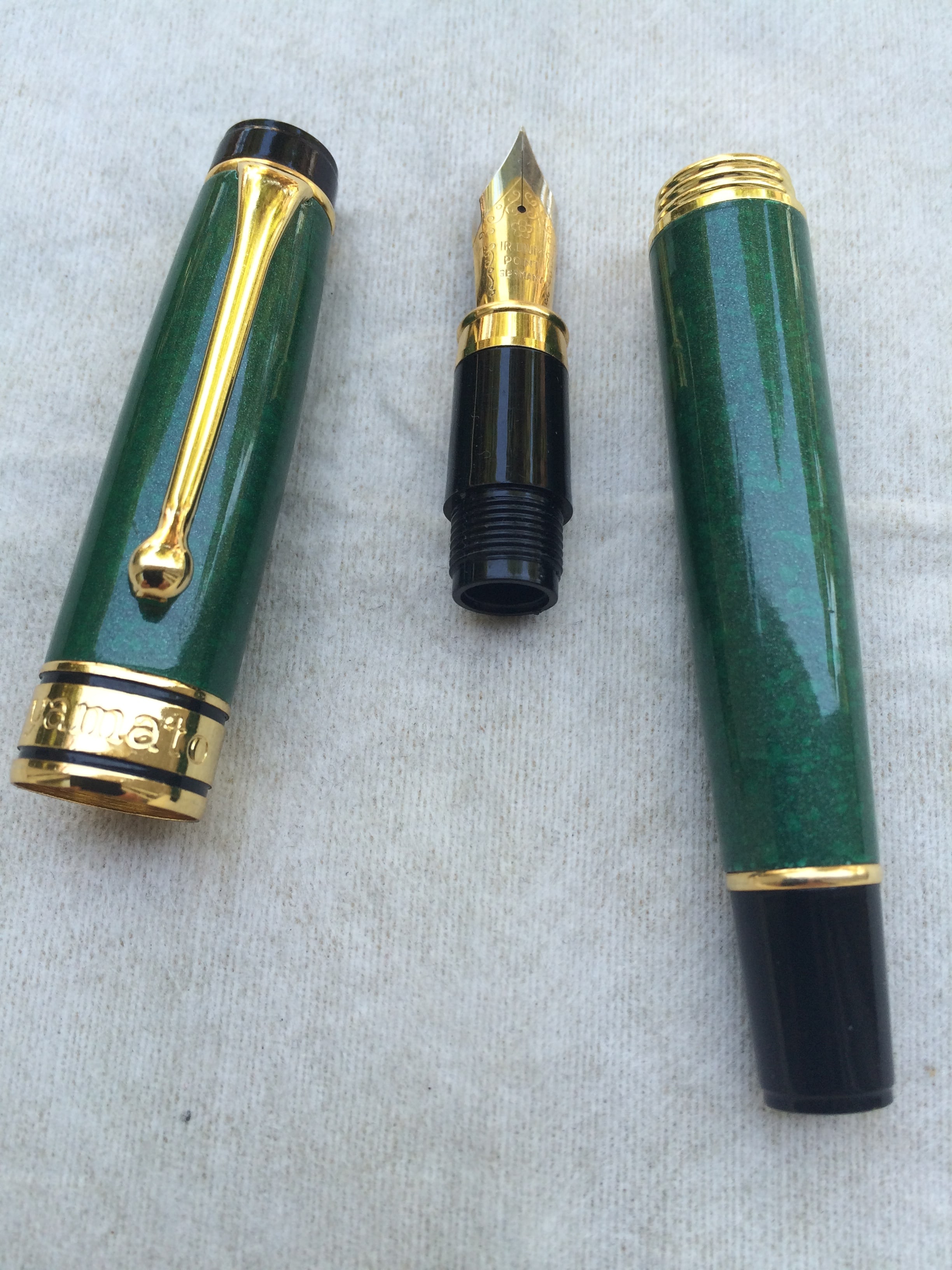 Il pennino è un dozzinale "Iridium Point Germany" ma bicolore e con l'incisione di "grazie" sui bordi (da quello che leggo sul forum,dovrebbe essere prodotto in Cina).