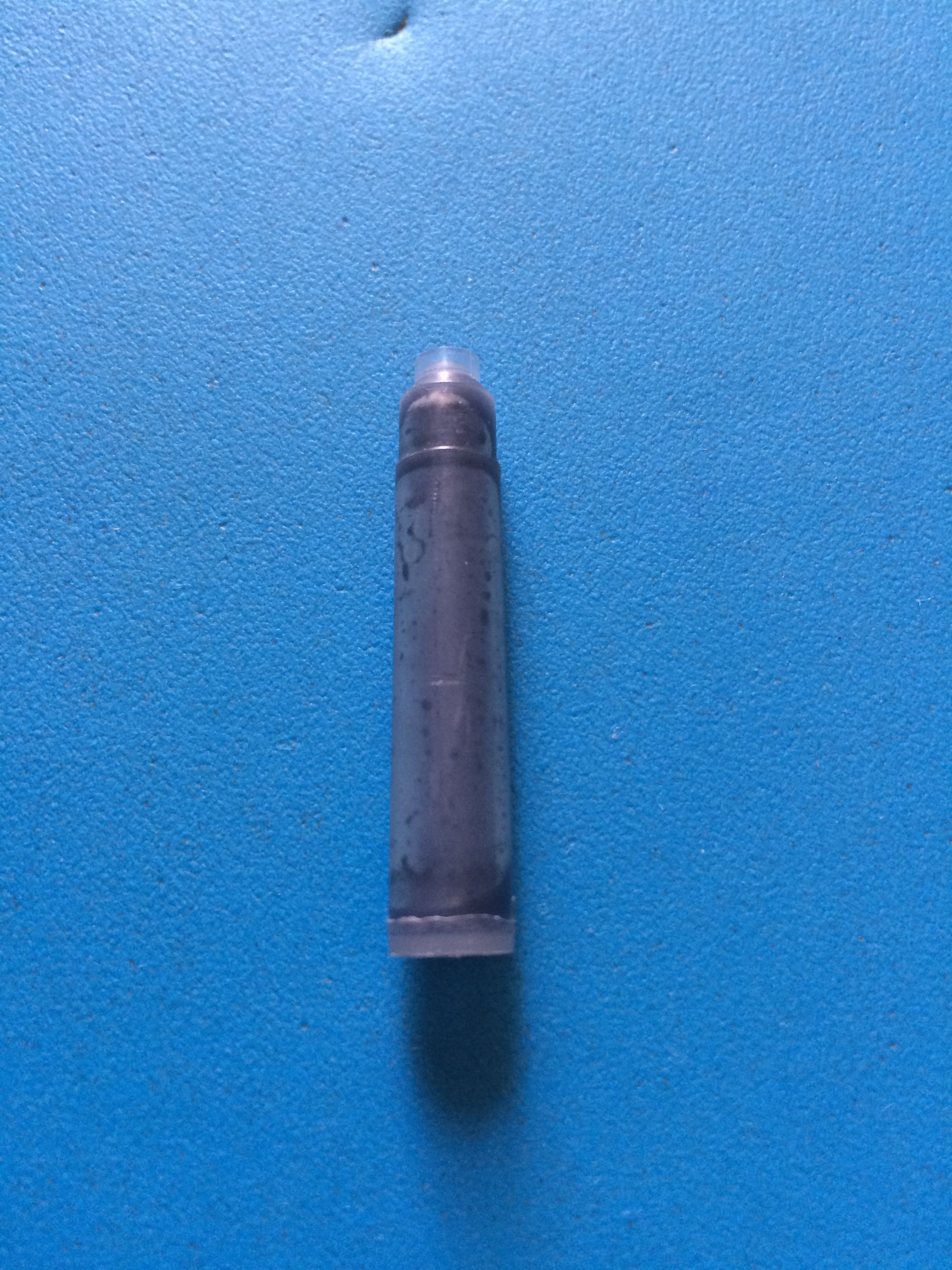 All'interno della pena era custodita (non inserita) questa cartuccia intonsa (ma con l'inchiostro rinsecchitosi per il tempo, che ritengo eccessivo rispetto alla probabile età della penna)