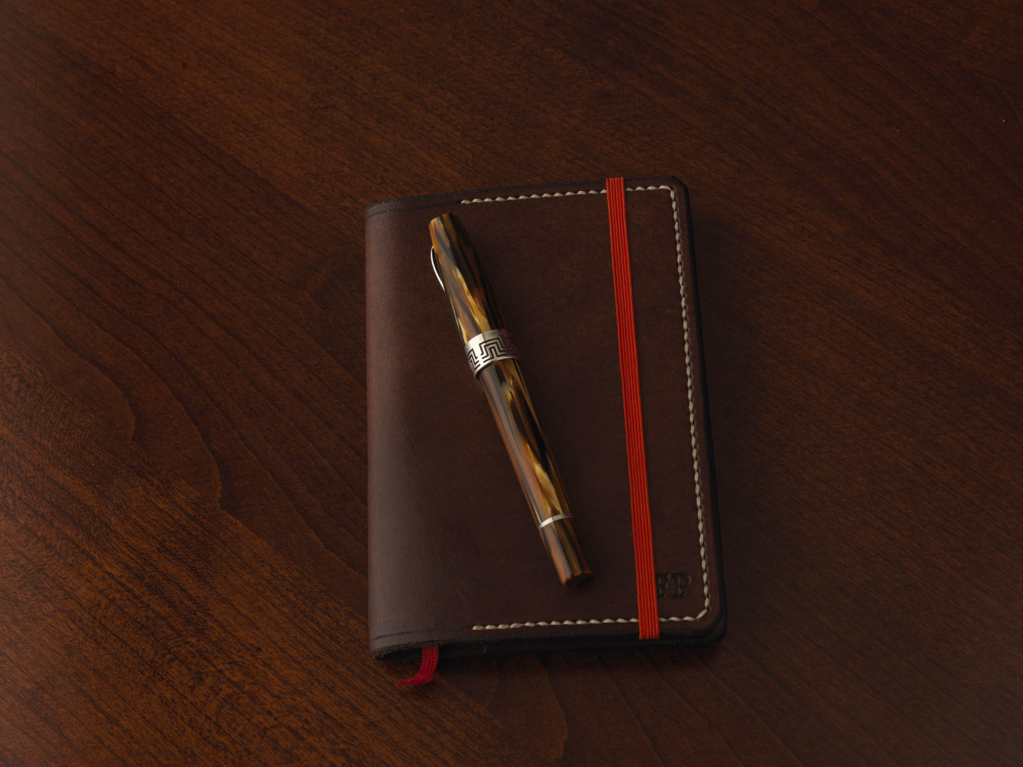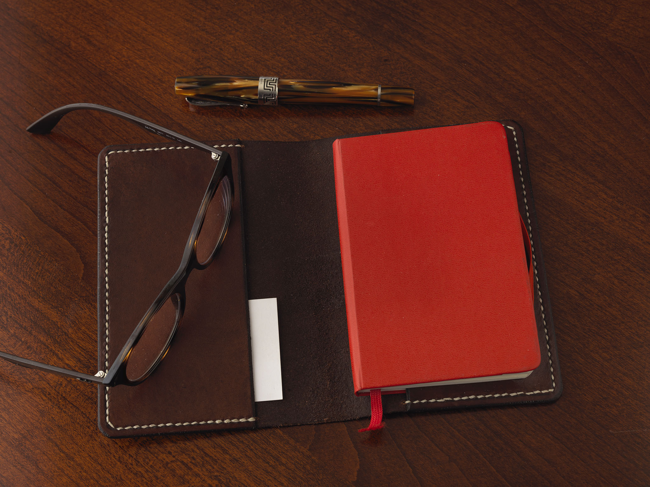 Tra breve invierò a Emma un nuovo ordine, per un Leather Notebook Cover Pocket, sempre in marrone però con cuciture nere, e dalla vestibilitá aderente, per portarlo più facilmente nella tasca della giacca nelle occasioni più formali che lo richiedano.