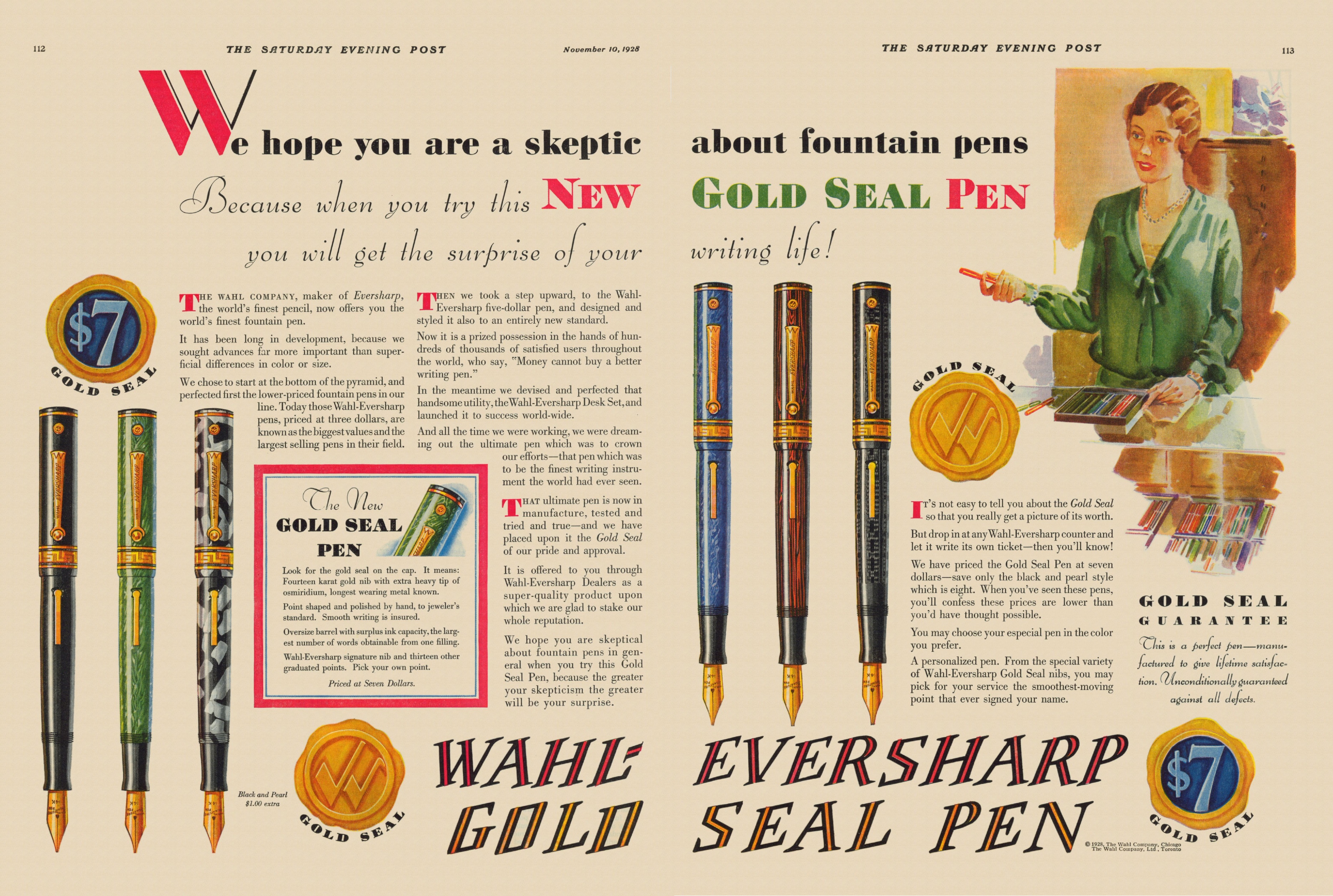 Come anticipato, l’iscrizione già connotava il pennino delle Wahl Pens almeno dal 1924, e sarà sempre ancora disponibile nel catalogo del 1929 come Gold Seal Nib ma…senza il “gold seal” e il Personal Point (blocco svitabile di pennino e alimentatore) che spettava solo alle due misure maggiori (#4 e #6).