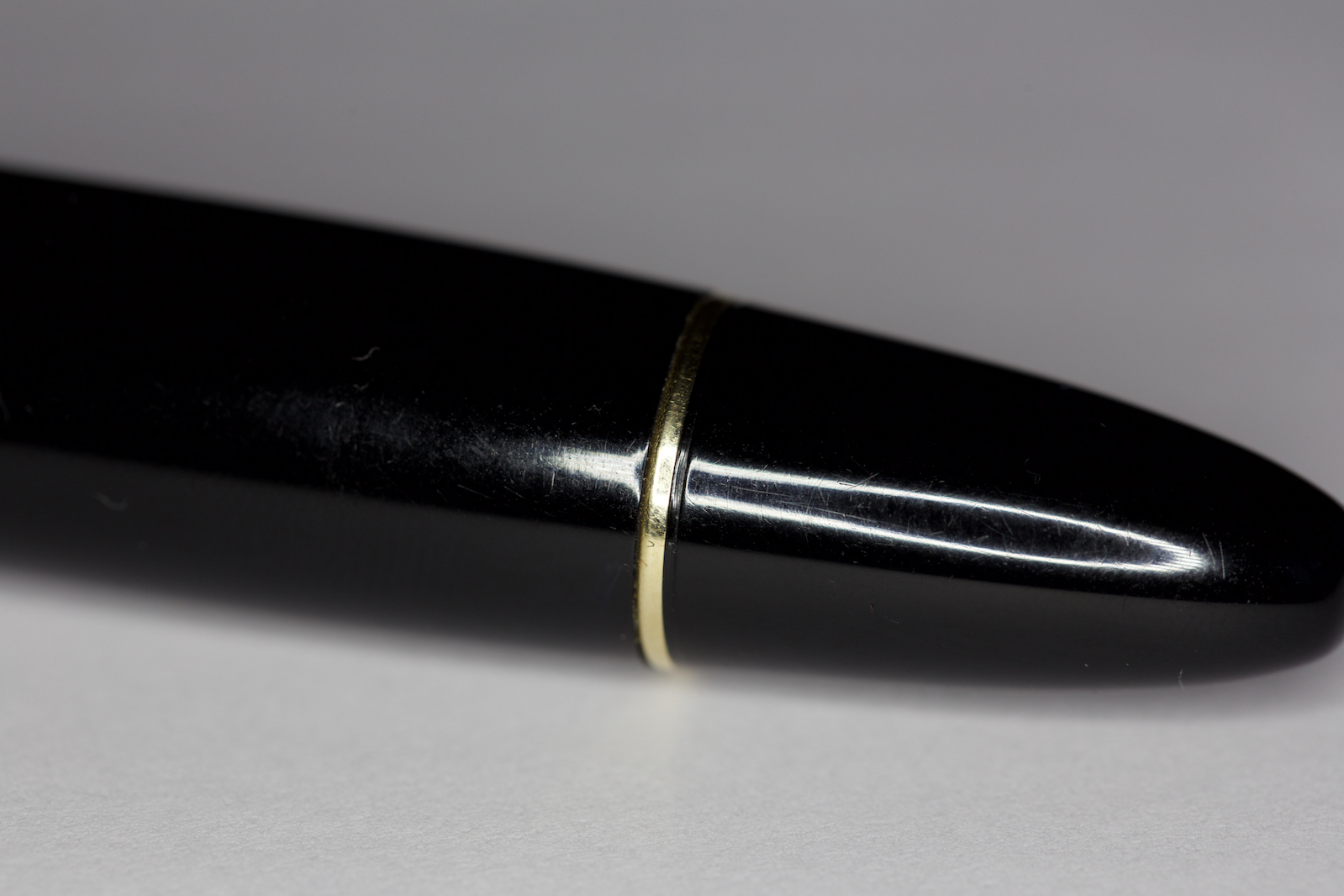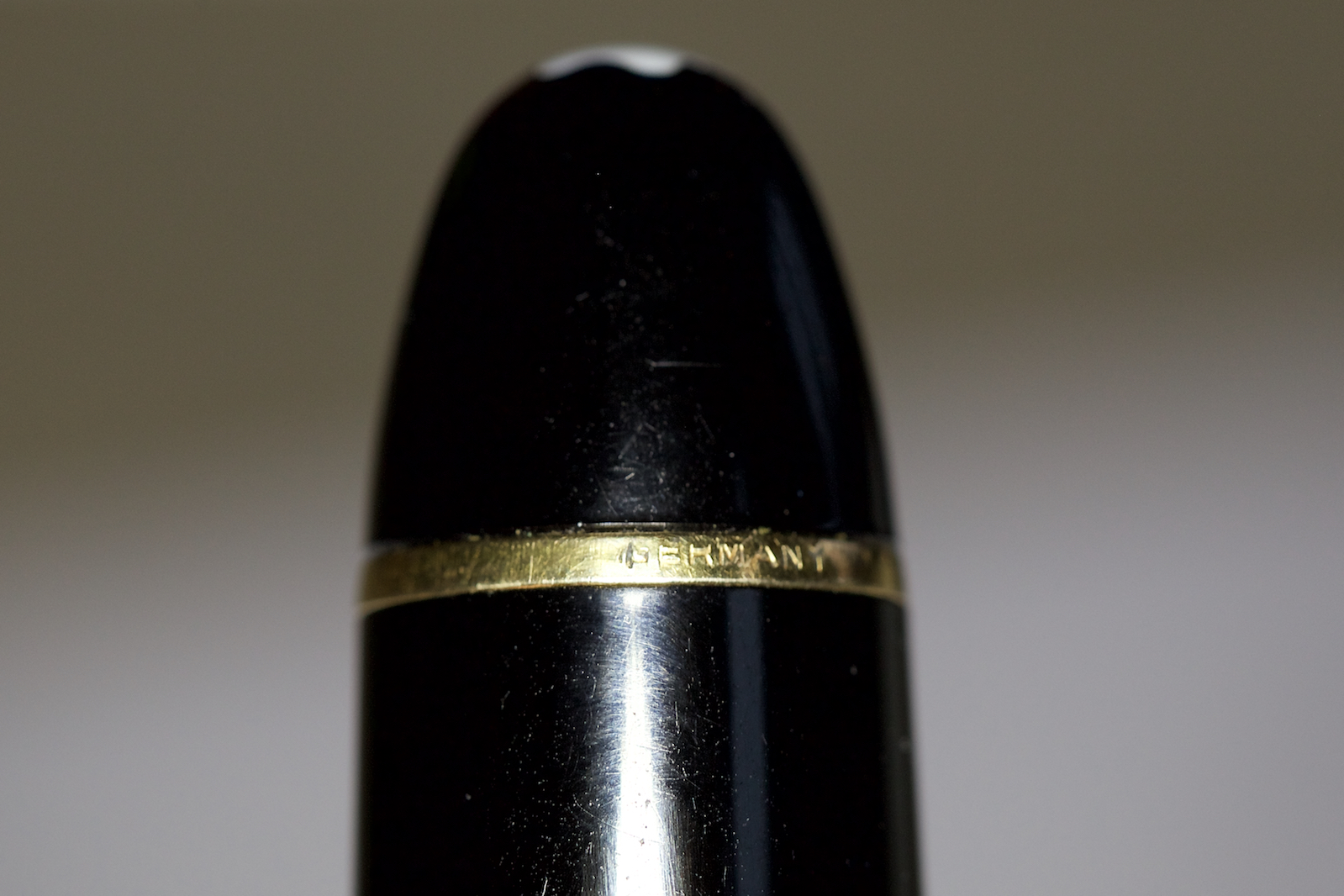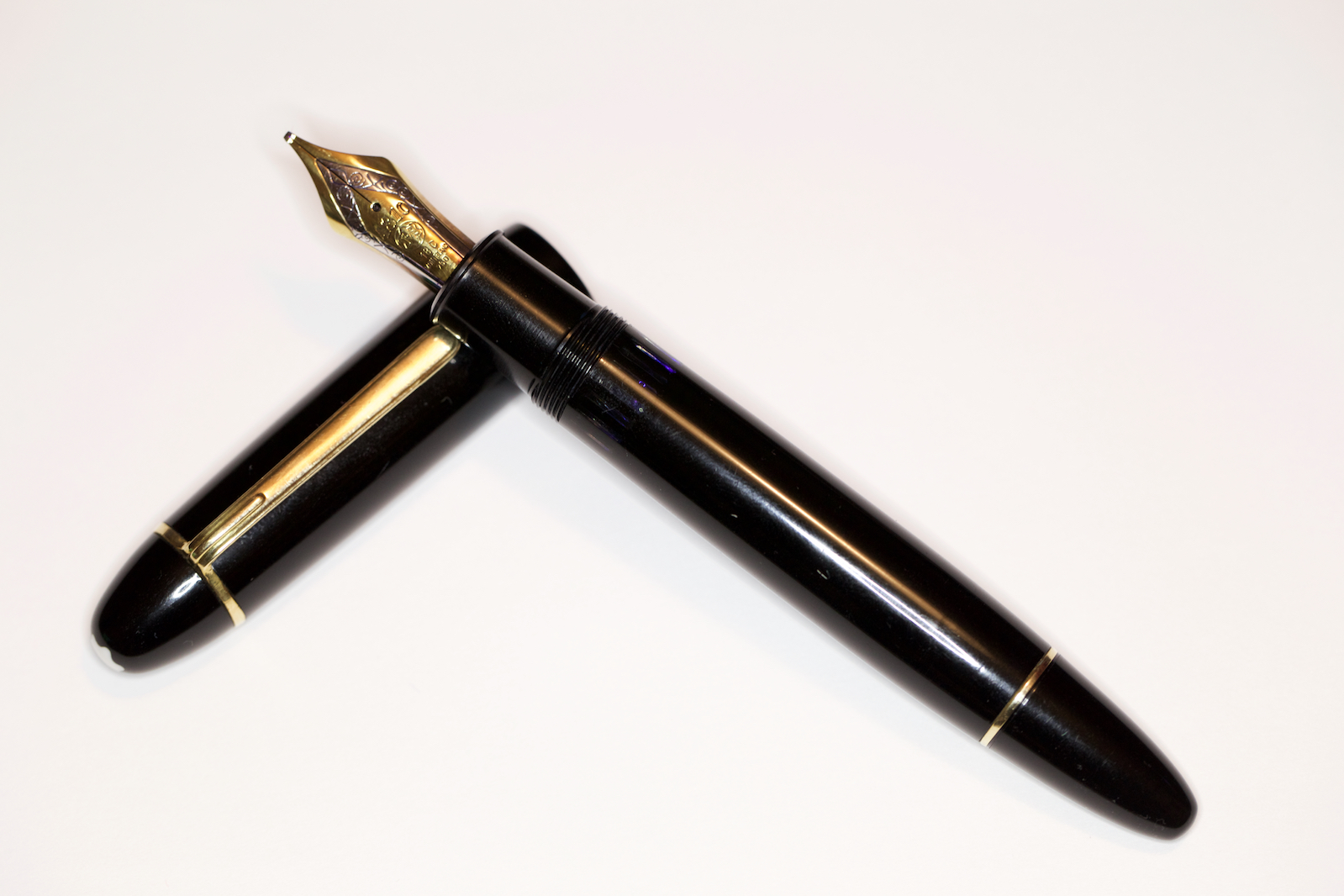 cercavo da tempo una Montblanc 149 degli anni sessanta per completare la mia piccola collezione di 149. Per intenderci è la prima versione in resina post celluloide. Ogni volta qualche parte della penna non corrispondeva, alimentatore postumo, pennino 14k o altre inesattezze temporali che unite a prezzi esagerati mi sconfortavano. Finalmente è capitata e pure con il pennino che volevo, alimentatore in ebanite con i due mezzi solchi, pennino BB in oro 18c, gruppo pistone non avvitato ma inserito a pressione, clip riportante la scritta "Germany". La capacità d' inchiostro è maggiore rispetto le 149 che verranno negli anni 70 a causa delle pareti del corpo molto più sottili, anche la guarnizione dello stantuffo, già in plastica, è più larga.