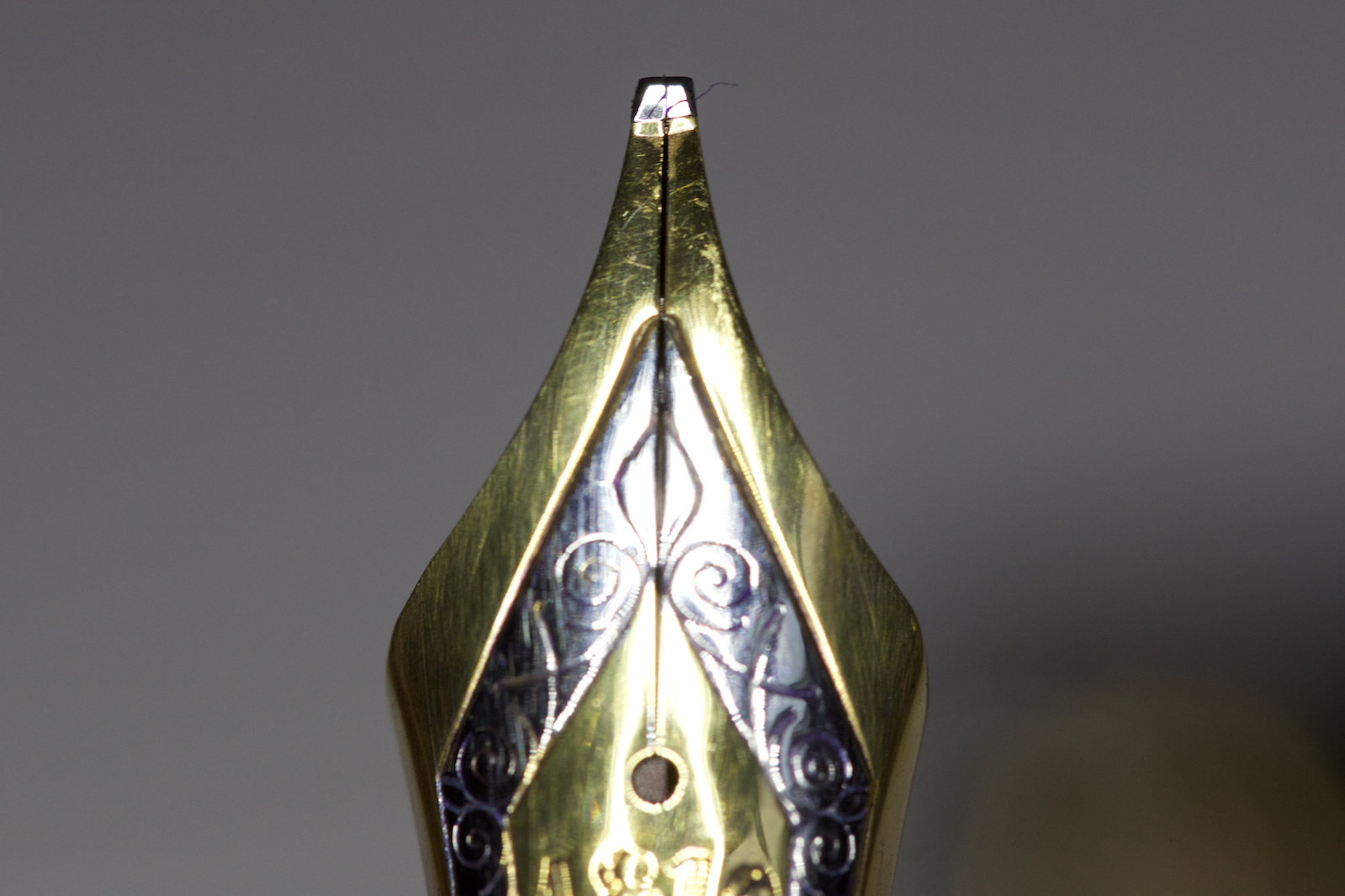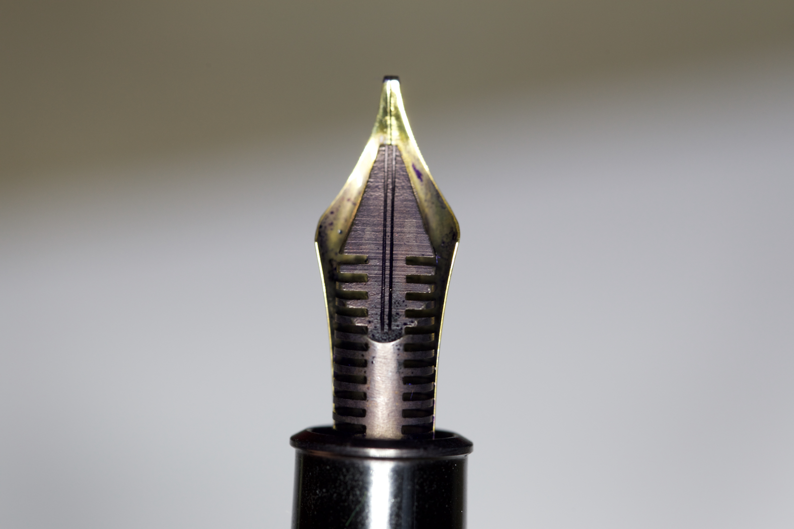 L' alimentatore è troppo all' interno della sezione, in ogni caso la penna scrive perfettamente, nei prossimi giorni mi costruisco un attrezzo per sistemarlo, anche l' occhio vuole la sua parte! Il pennino doppio broad è fantastico, non flessibile, tricolore, scrive lasciando una linea bella corposa e l' inchiostro non manca mai neppure dopo giorni passati con la penna in posizione verticale. Che posso aggiungere, sono molto soddisfatto e me la sto godendo!