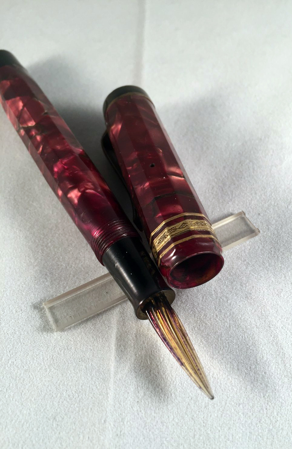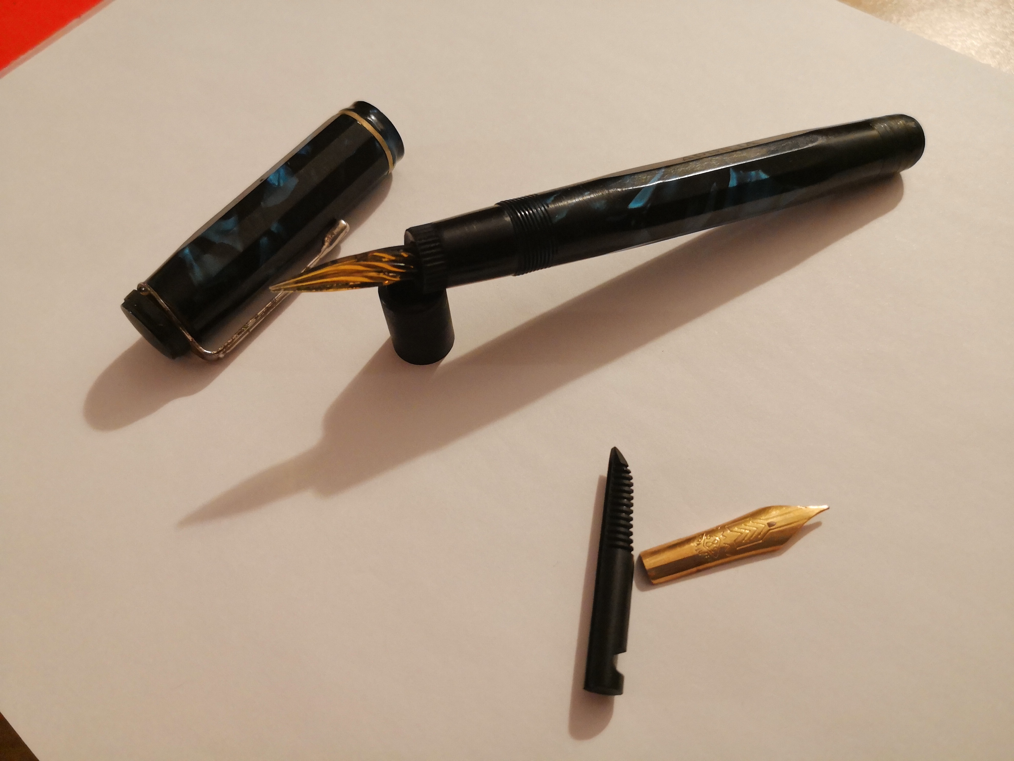 Potrebbe questa penna con su inciso APRILIA aver avuto un pennino in vetro? Assieme alla penna infatti oltre al pennino OMAS 8 ed al feed ho trovato un pennino in vetro e un cilindretto in plastica dentro il tappo (impediva forse il fine corsa del pennino di vetro contro il tappo?)