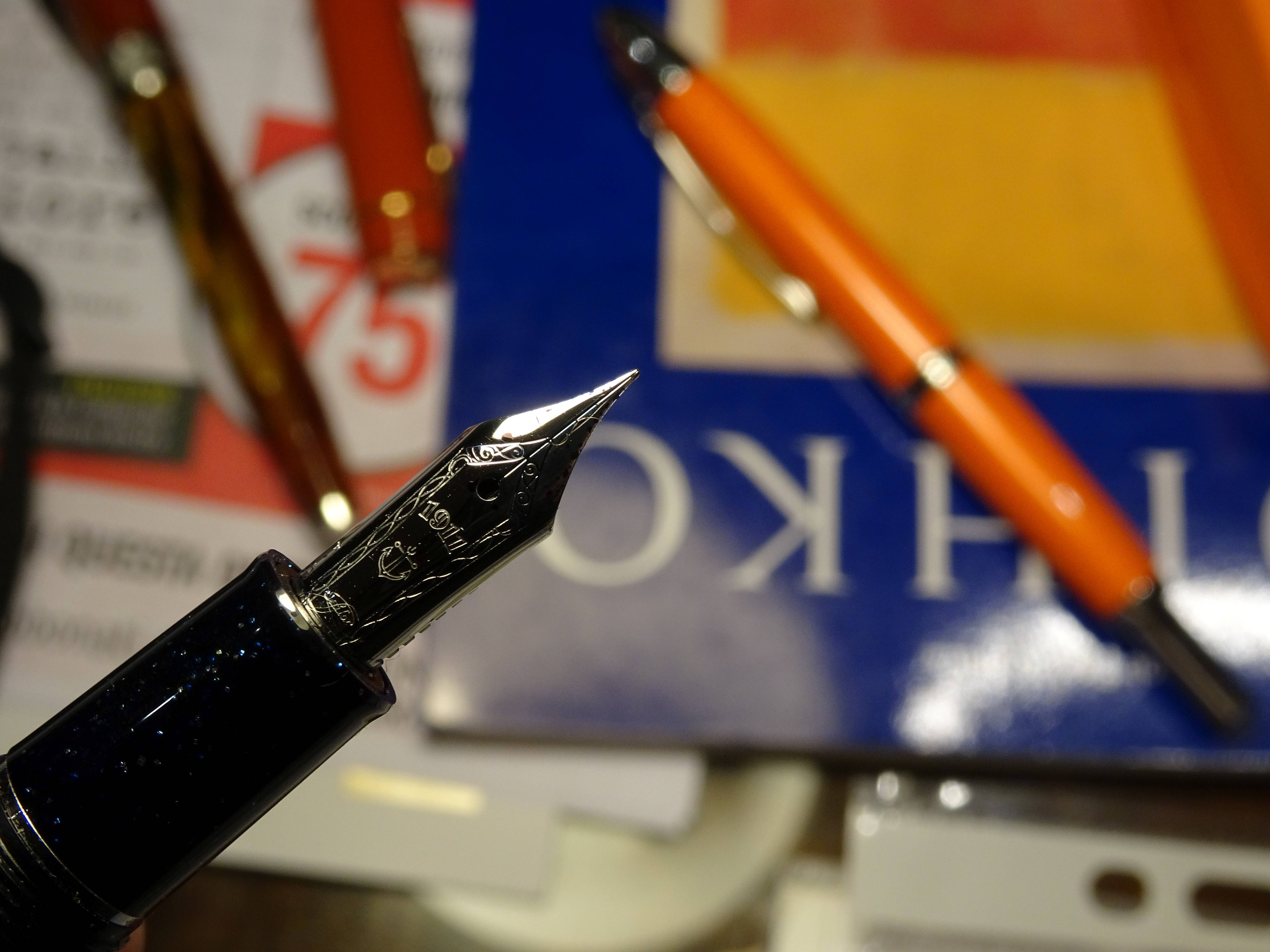 Io ho la Shikiori, che monta lo stesso pennino ma dorato. Lo adoro, semplicemente, ho quello F. Flusso giusto, scrive sempre e per me lo fa molto bene. Ho anche la Profit Casual che monta lo stesso pennino ma è EF. E adoro pure quello. È difficile fare un extrafine così scorrevole, con M e B è più facile