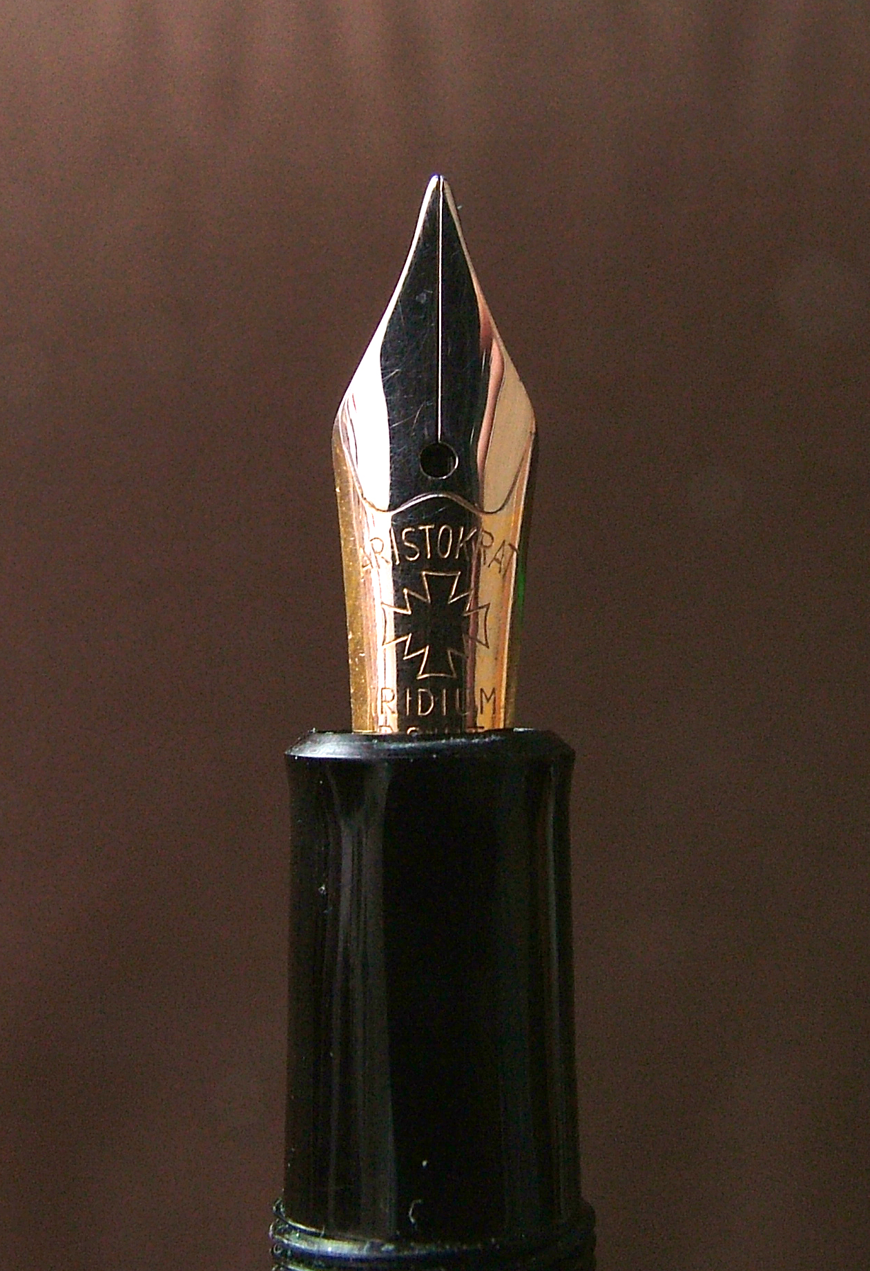 Ciao Max, avendone una anch'io ( una numero 20 come forse anche la tua), a suo tempo feci qualche ricerca nel tentativo di acquisire qualche notizia in più, ma con risultati non definitivi. Credo che in Germania nel corso del novecento si siano avvicendate almeno due esperienze con questo nome, così come si ritrova la croce di malta o cose molto simili su diversi marchi. Pare che penne targate AristoKrat furono prodotte nel sud della Germania dalla famiglia Lennert fino agli anni sessanta, anche se poi la famiglia continuò a gestire una attività commerciale nel settore stilo a Zirndorf almeno fino ai primi anni del duemila. Ne vidi una in rete con sul pennino l'effige di un becco d'aquila. La produzione riferibile a Carl Räuchle che produsse anche con il marchio PlatiKa e Diplomat ( che poi intorno al 1980 fu ceduto) riporta , come le nostre, l'effige della croce di Malta. C'è poi la bellissima AristoKrat in ebanite pubblicata nel 2015 da Maxpen, dove il marchio AristoKrat è affiancato a due alabarde e dove la "parentela" con la Simplo pare molto fondata. Insomma, concludendo, c'è da sbizzarrirsi. Può darsi che la tua bella presentazione mi faccia venire voglia di riprendere le ricerche o meglio ancora può darsi che qualcuno che ne sa di più ci aiuti. Intanto goditi la tua bella penna e grazie .